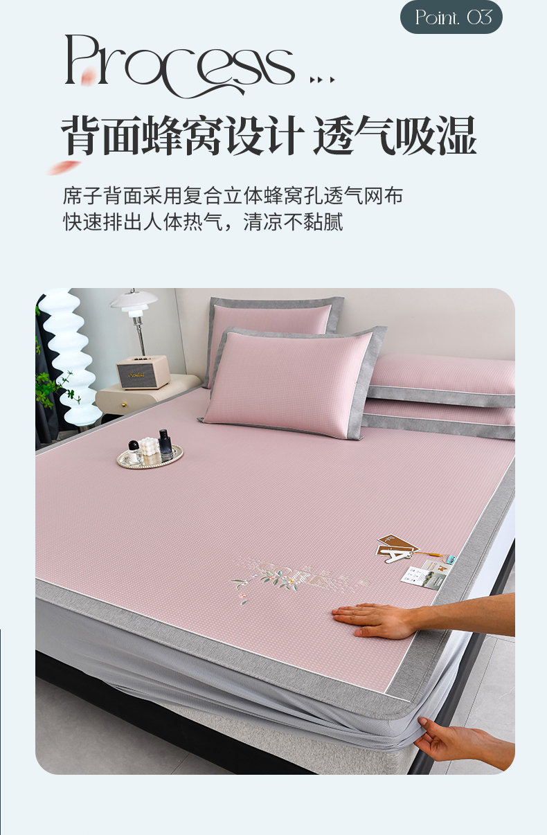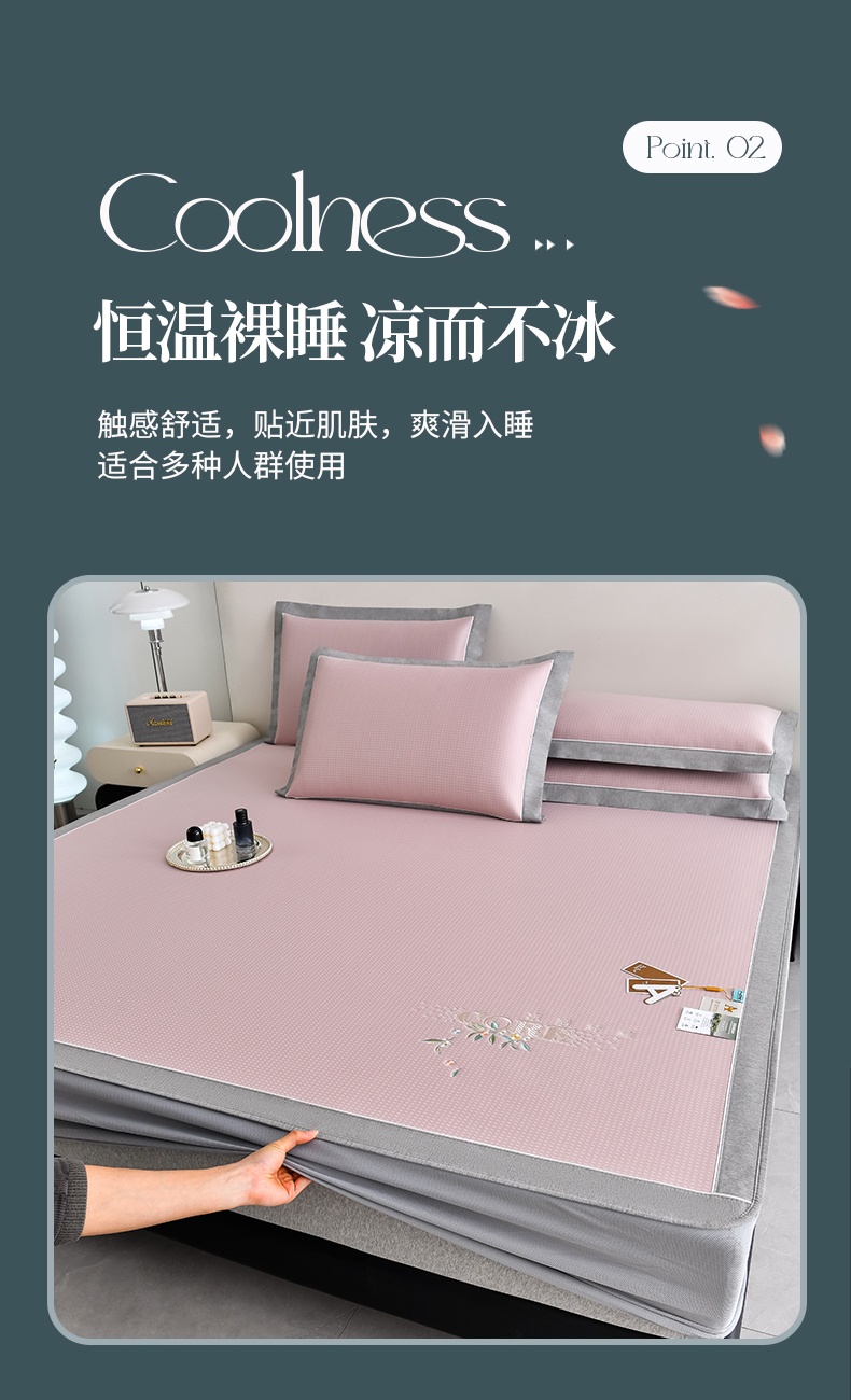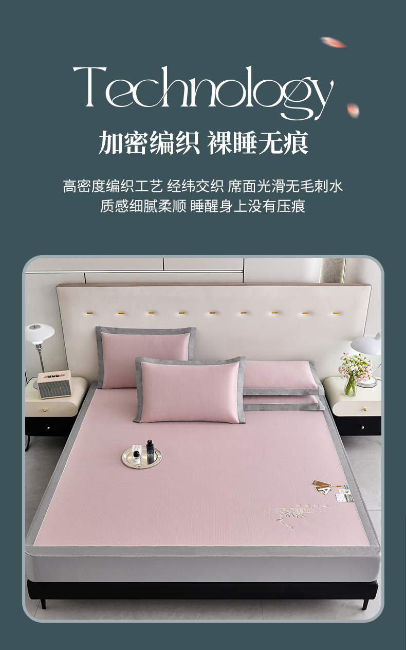 (总)2023新款超精密冰丝席-小斜纹系列-床笠款藤席凉席竹席,粉色,蓝色,绿色,银灰