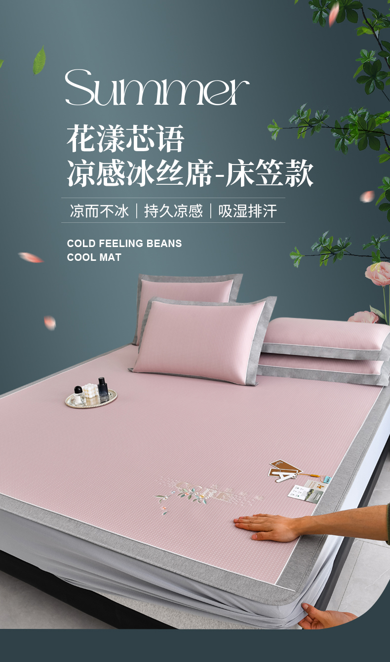 (总)小牛席业 2026春夏新款轻奢半定位凉感冰丝席凉席席子系列床笠款,轻奢半定位-粉色 床笠款,轻奢半定位-灰色 床笠款,轻奢半定位-蓝色 床笠款,轻奢半定位-抹茶 床笠款,轻奢半定位-香槟 床笠款