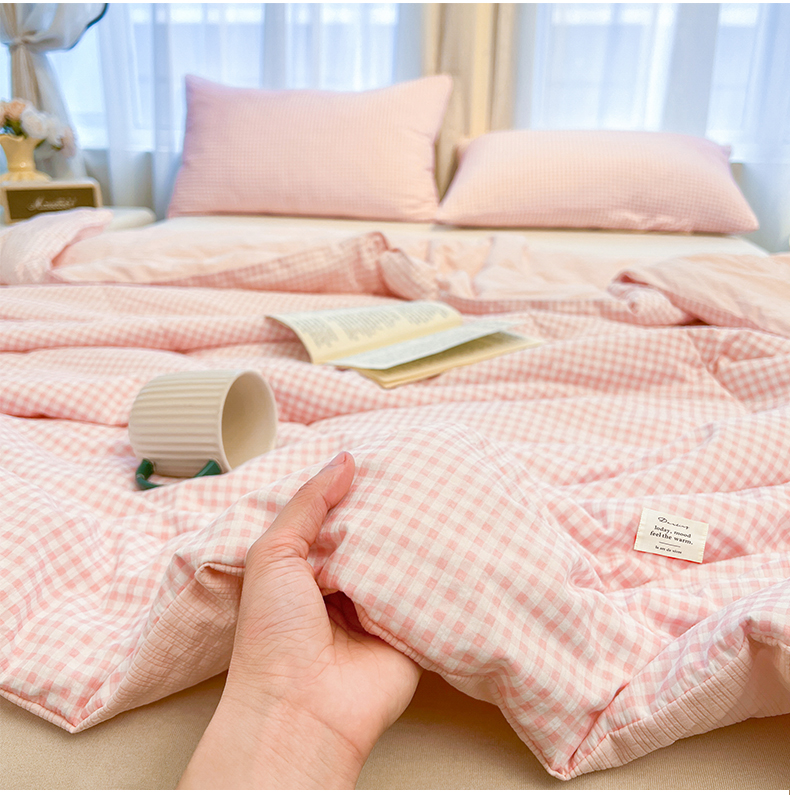 商品名称:老帅的工厂店 2026新款无印风泡芙棉大豆夏被 杏橘织格