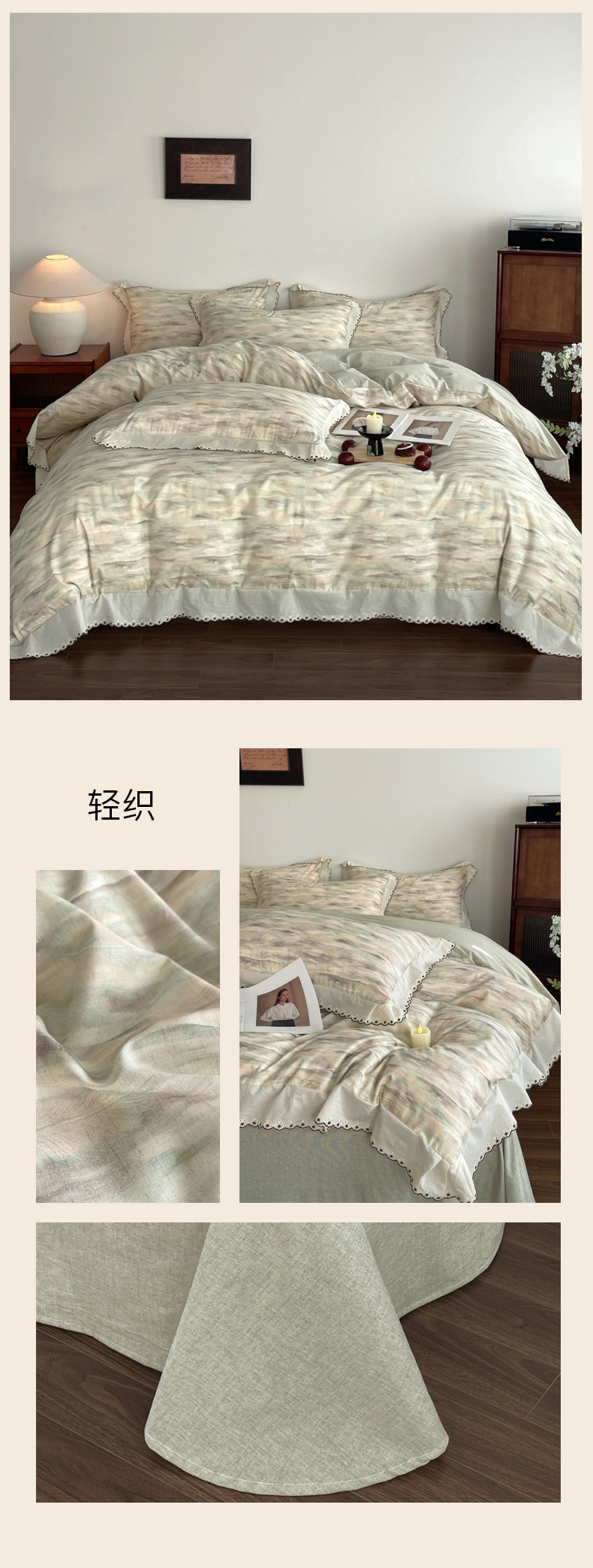 当前位置: 91家纺网 > 商品网购 > 床品套件 > 四件套 > 莱赛尔四件套 > 慕晨 2026新款天丝莱赛尔棉麻数码印色织花边被套四件套高级田园美式直播热款 柔织