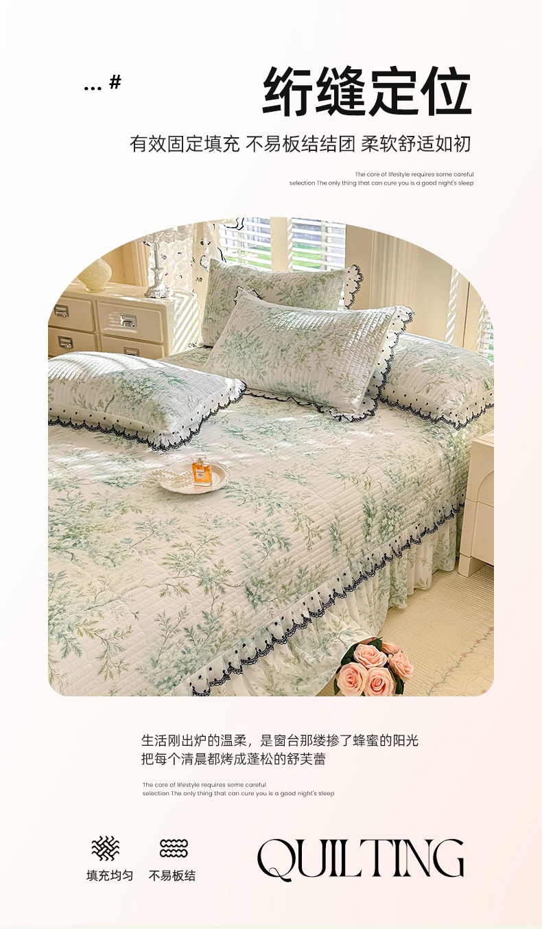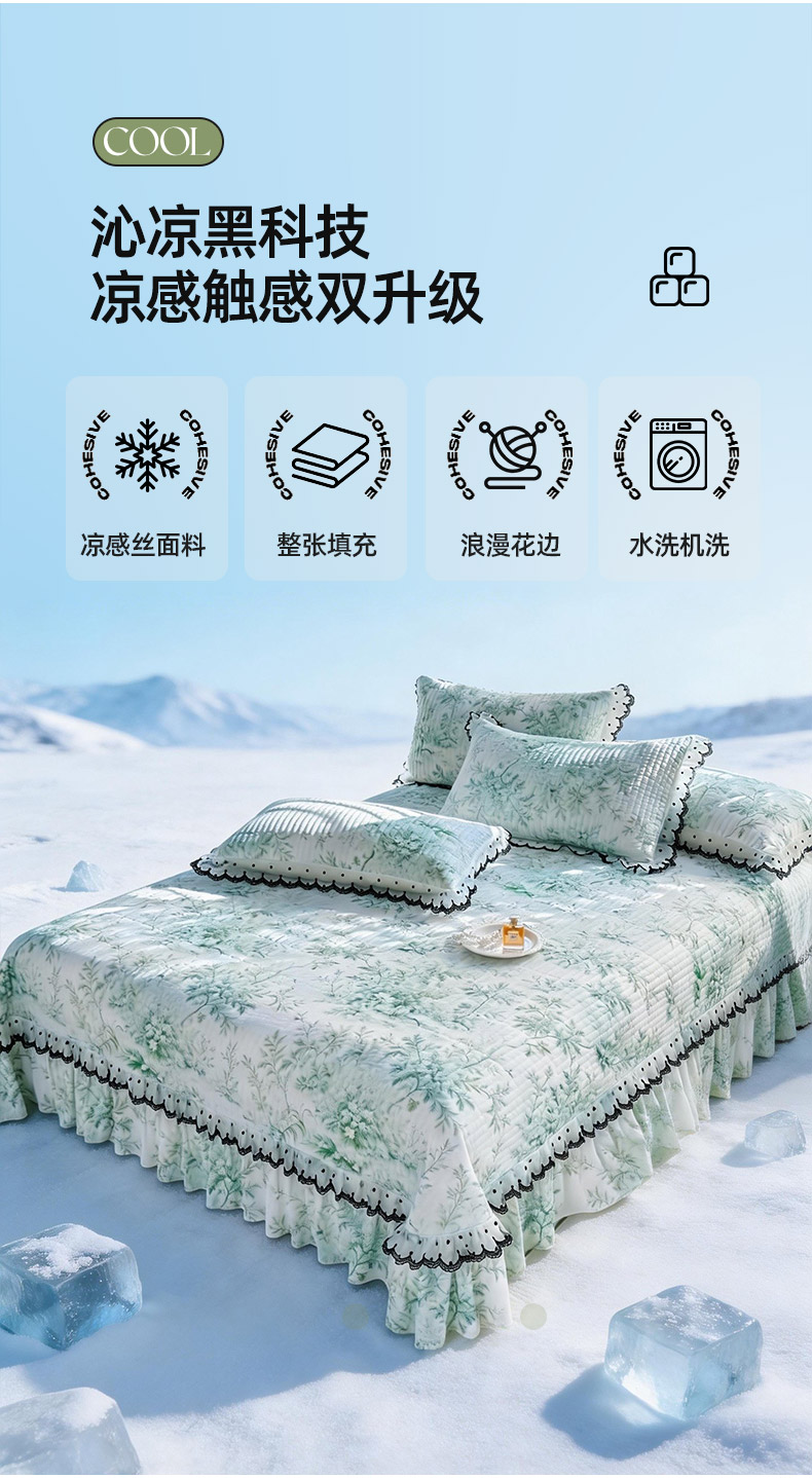 • 91家纺网 家纺一手货源 找家纺 丝印良品 2026新款凉感丝夹棉床盖款三件套 解语花吟