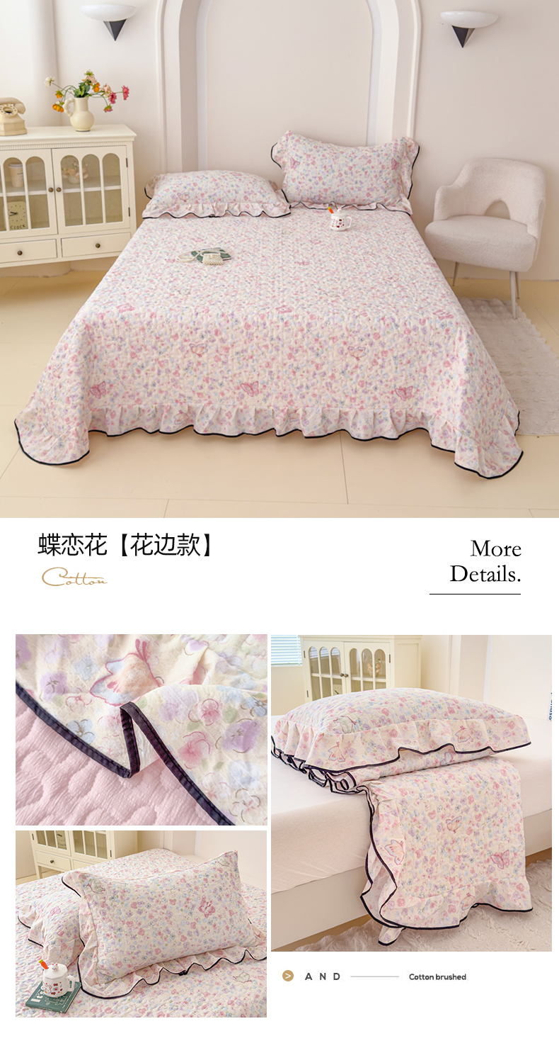 (总)999家纺 2026新款双层纱花边床盖单件加厚夹棉云感皱皱纱花边床单三件套四季跑量(提供买家秀),初见【花边款】,春天里【花边款】,蝶恋花【花边款】,蝴蝶梦【花边款】,花影【花边款】,静初【花边款】,兰黛【花边款】,漫花【花边款】,木兮【花边款】,慕情【花边款】,浅画【花边款】,寻梦粉【花边款】,寻梦紫【花边款】,樱桃格【花边款】,紫韵【花边款】