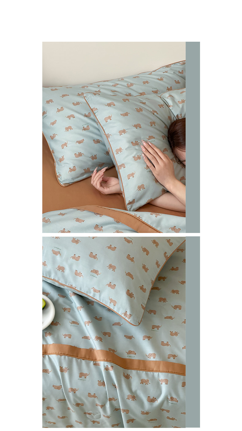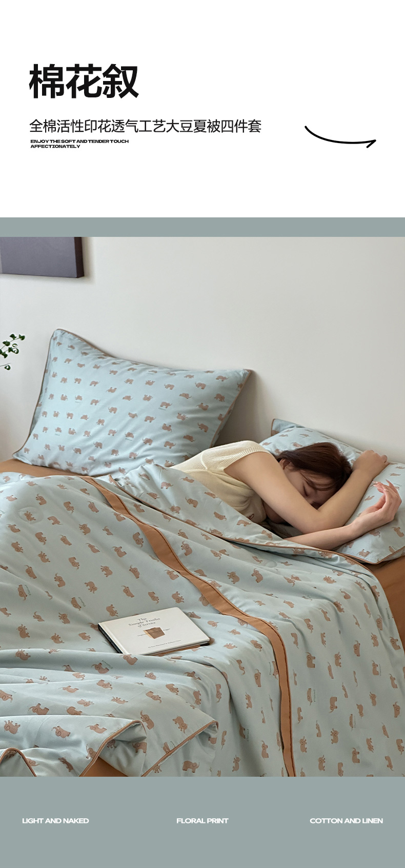 一加一 2026新款活性印花透气工艺大豆夏被夏凉被空调被四件套-棉花叙 麦田小象 绿