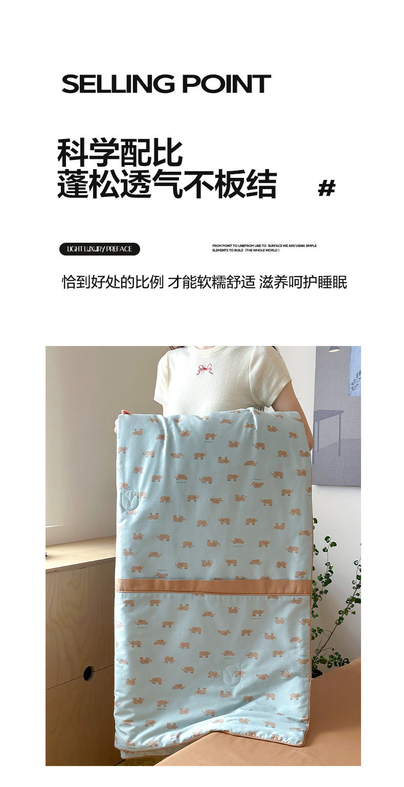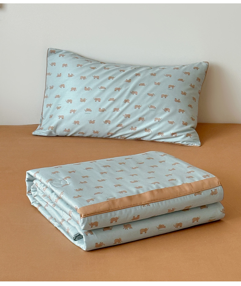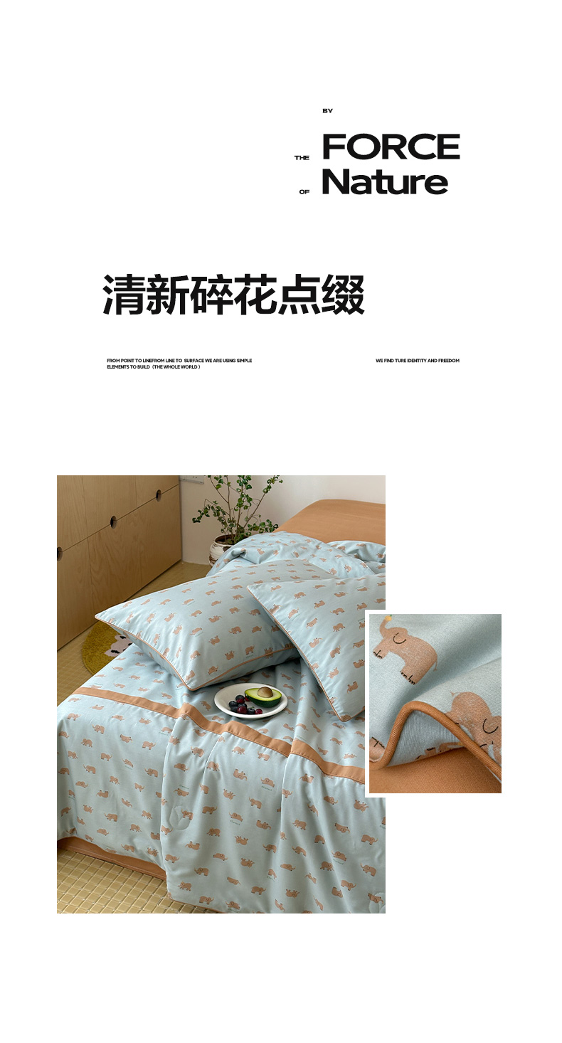 • 91家纺网 家纺一手货源 找家纺 一加一 2026新款活性印花透气工艺大豆夏被夏凉被空调被四件套-棉花叙 麦田小象 绿