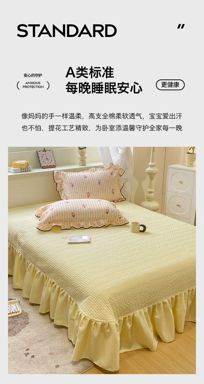(总)优贝家纺 2026新款云感双层纱皱皱纱花边床盖夹棉四件套,春日花园,马马福福-咖,马马福福,小花蝴蝶结,花香,甜心时光,可爱熊,奇奇乐园,小马乐园,小美好,星星人,星雪人,悠然小花