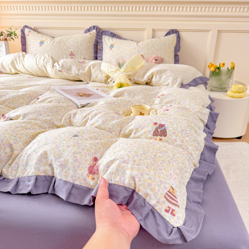 当前位置: 91家纺网 > 商品网购 > 床品套件 > 四件套 > 全棉普通四件套 > 疆东 【疆东】2026韩版蕾丝花边纯棉全棉双层纱四件套印花纯棉四件套法式赫本木耳花边全棉公主双层纱四件套 晴空
