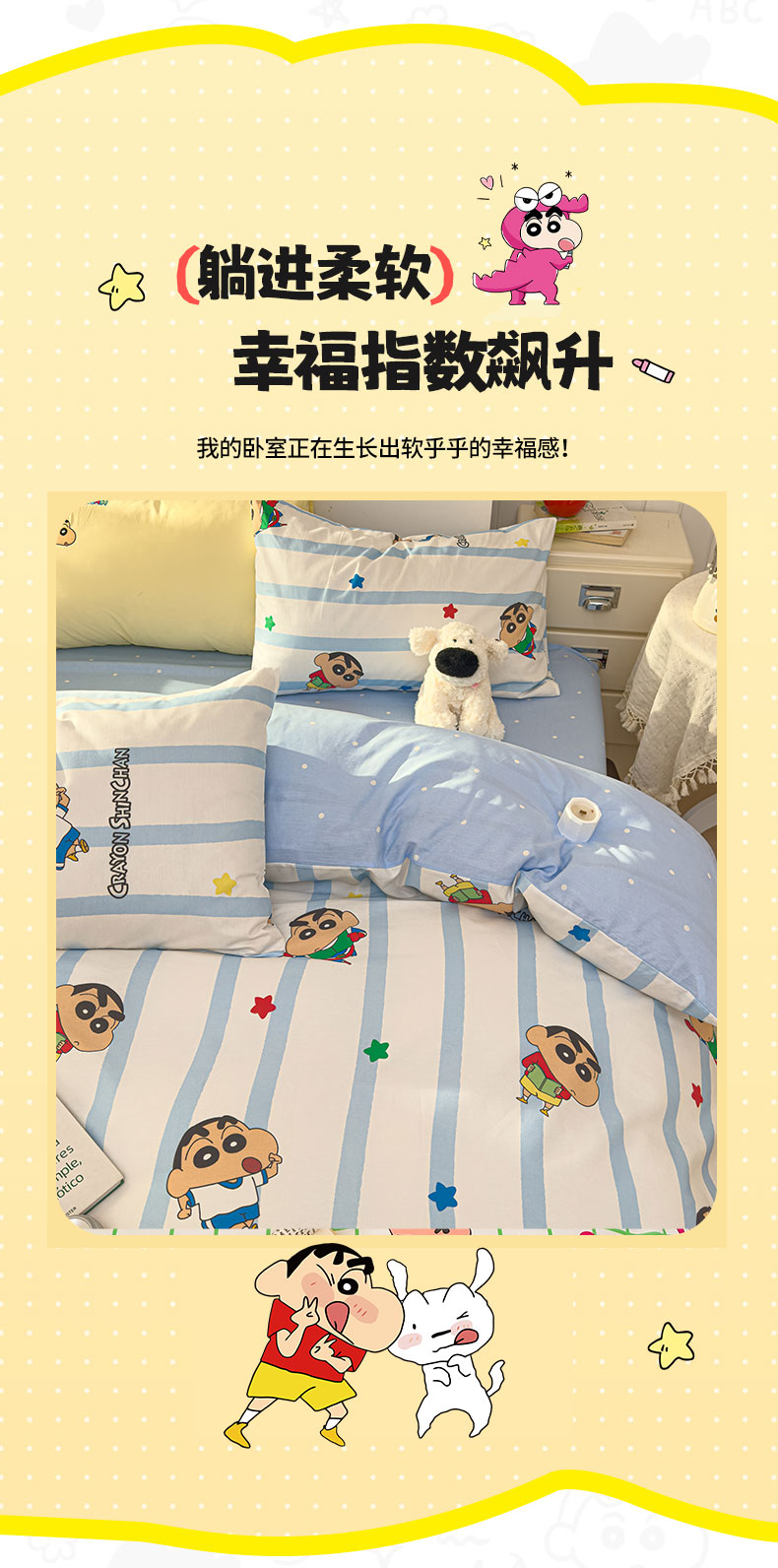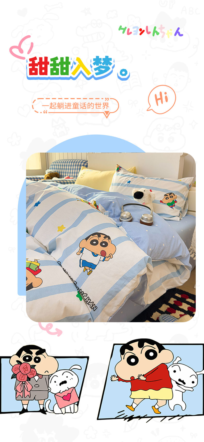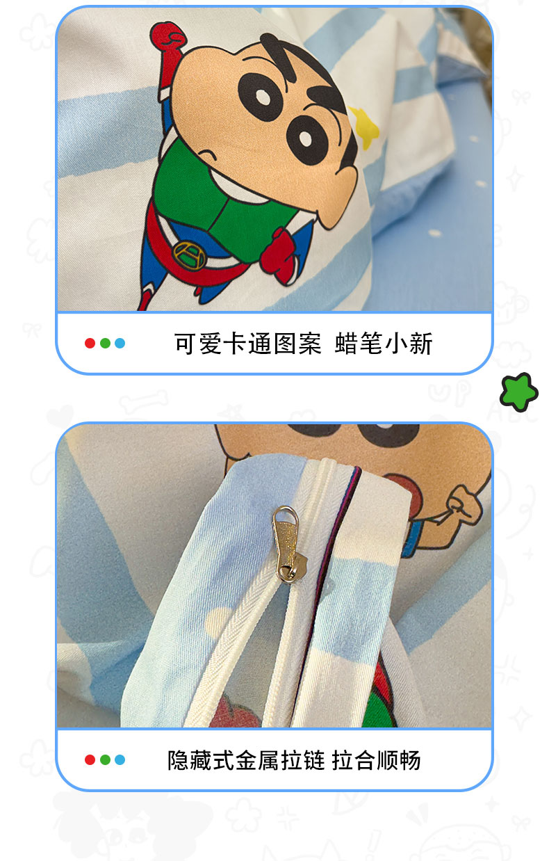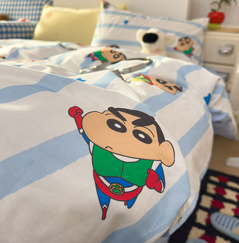 当前位置: 91家纺网 > 商品网购 > 床品套件 > 四件套 > 其它四件套 > 桃子家居 2026新款A类蜡笔小新正版授权刺绣混搭枕套卡通印花系列四件套 棉蜡笔小新-超人小新