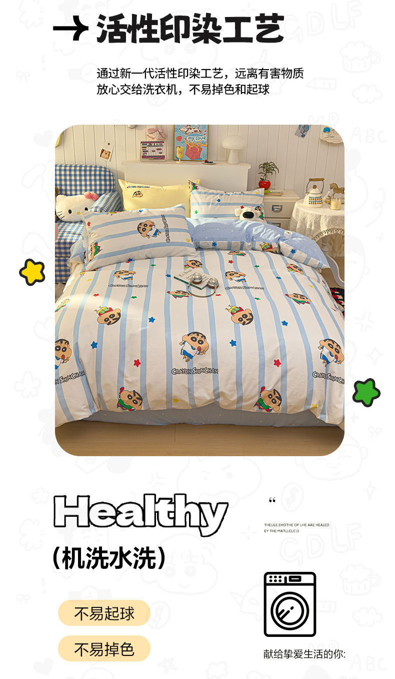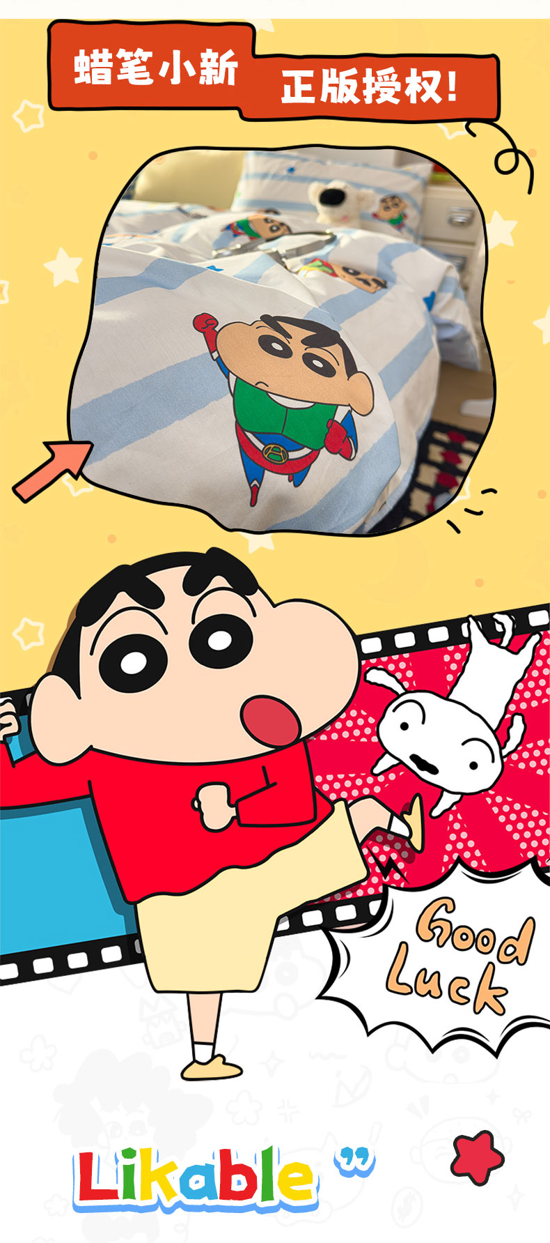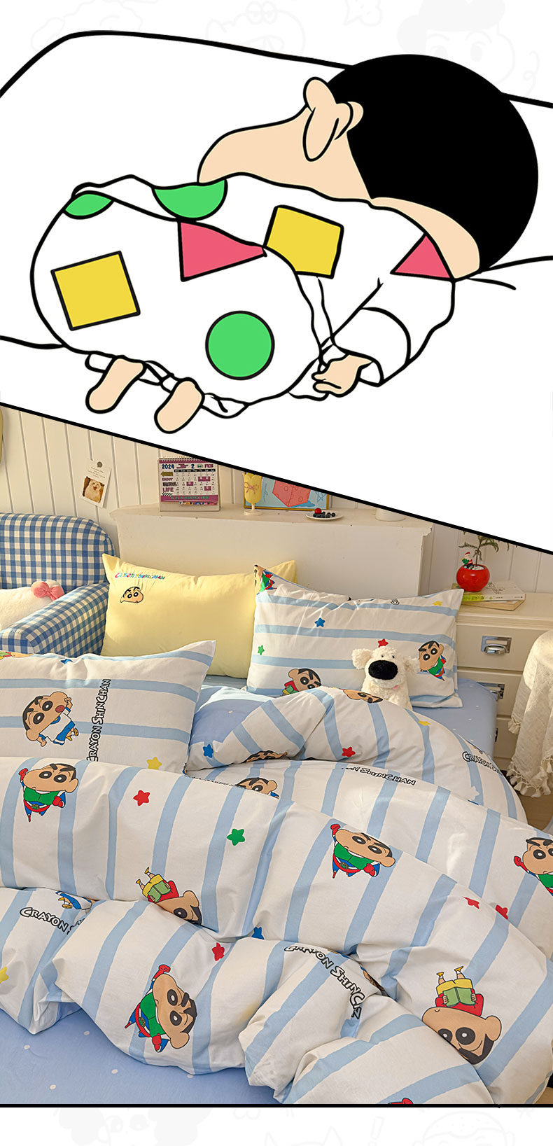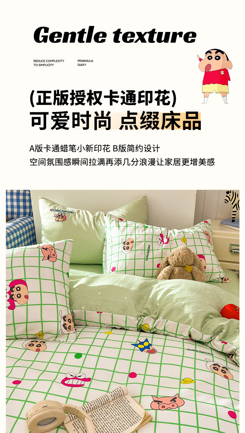 当前位置: 91家纺网 > 商品网购 > 床品套件 > 四件套 > 其它四件套 > 桃子家居 2026新款A类蜡笔小新正版授权刺绣混搭枕套卡通印花系列四件套 棉蜡笔小新-超人小新