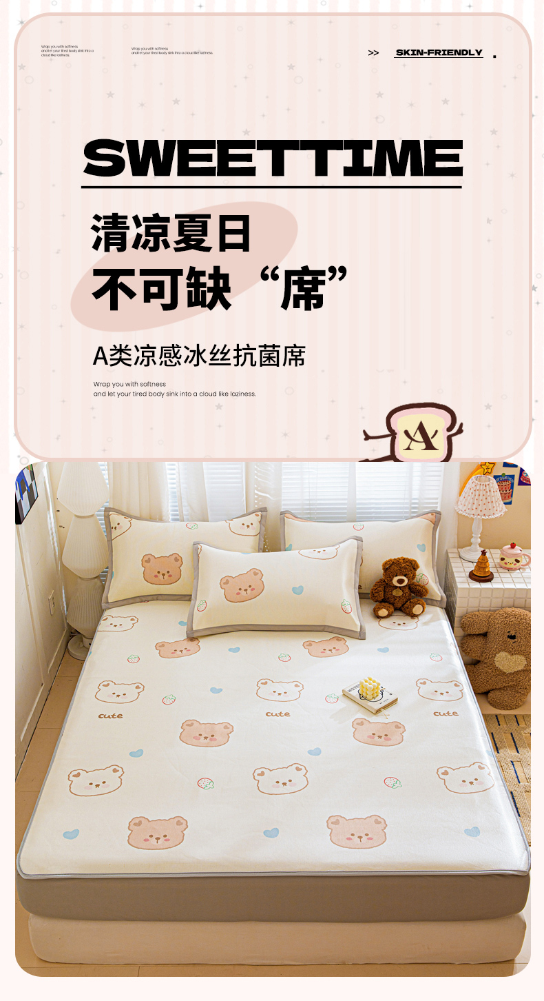 当前位置: 91家纺网 > 商品网购 > 床上用品 > 凉席 > 冰丝席 > 富馨莱 2026新款冰丝凉席床笠款凉席席子支持一件定制定做 饼干熊