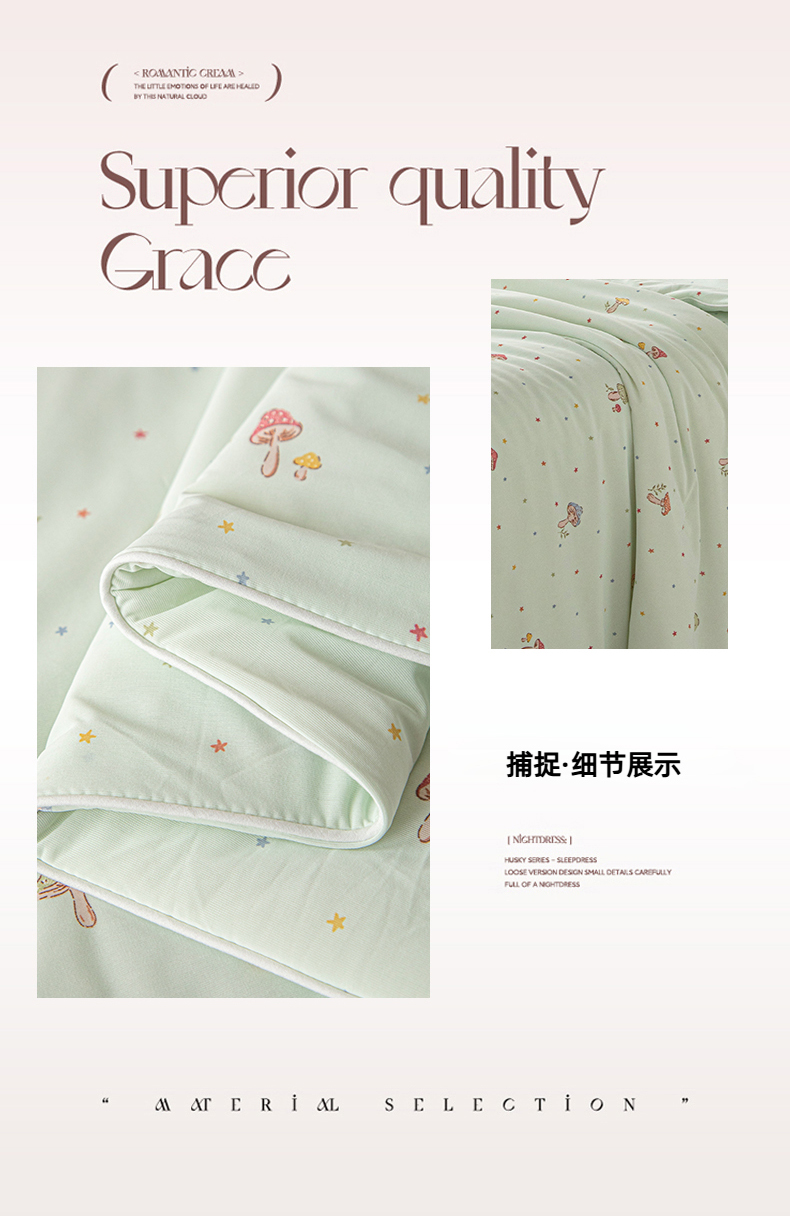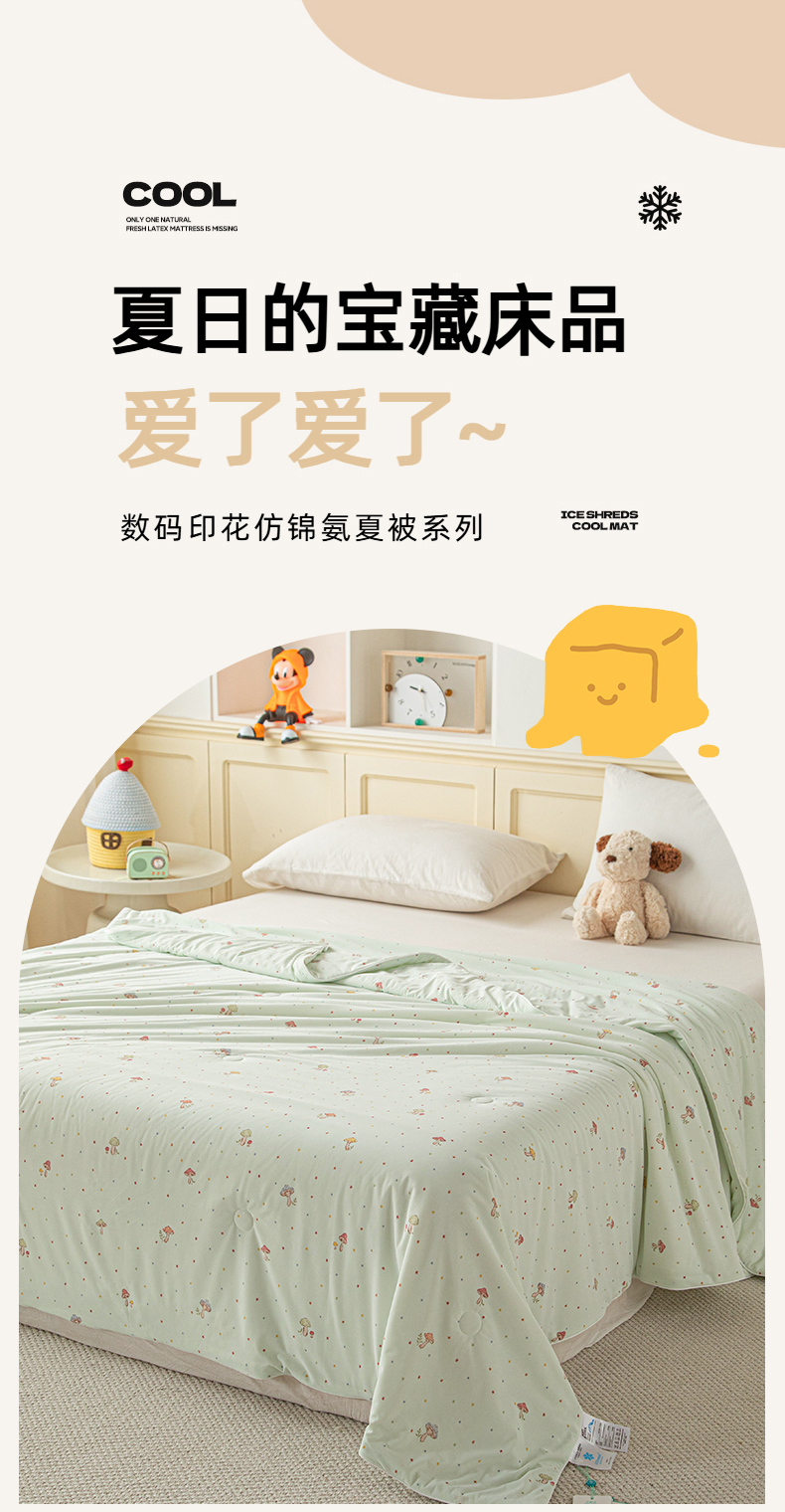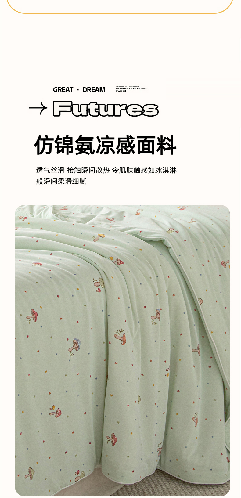 商品名称:亿莱鑫 2026春夏新款数码印花仿锦氨夏被夏凉被空调被 蘑菇庄园
