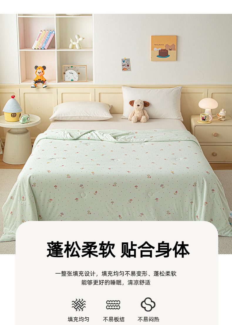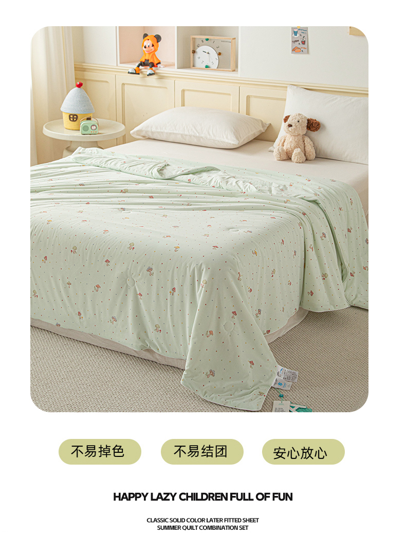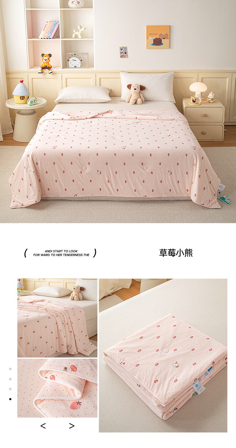 (总)亿莱鑫 2026春夏新款卡通印花仿锦氨夏被夏凉被空调被,彩绘小熊,格纹小象,蘑菇熊屋,树屋熊趣,甜品聚会,星梦萌友,星星小象,熊仔面包店