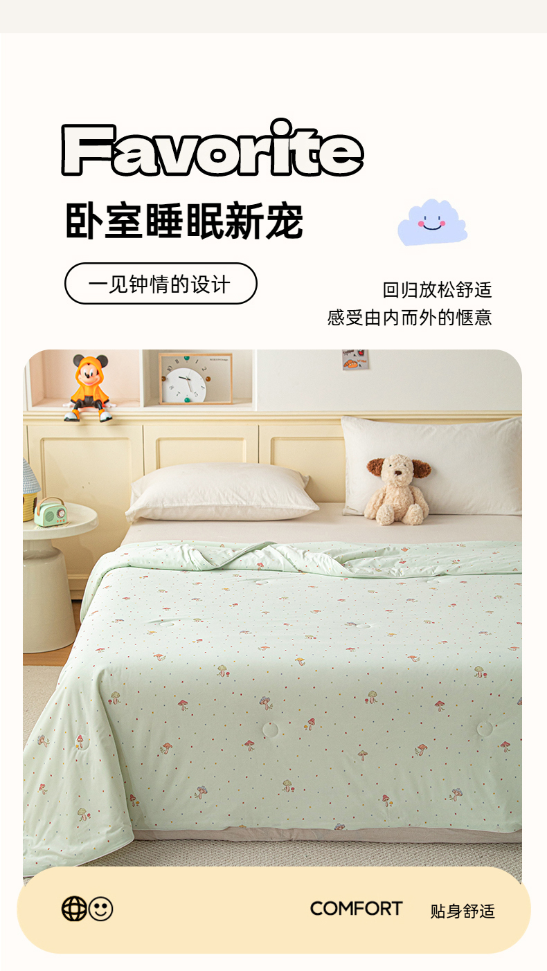 亿莱鑫 2026春夏新款数码印花仿锦氨夏被夏凉被空调被 蘑菇庄园