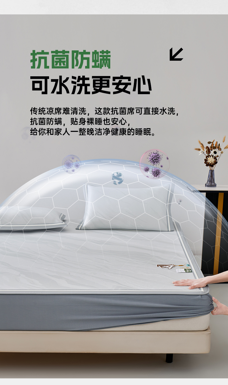 (总)2023新款超精密冰丝席-小斜纹系列-床笠款藤席凉席竹席,粉色,蓝色,绿色,银灰