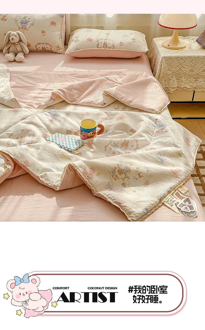 (总)贝扬思家纺 2026新款云感双层纱7A抗菌夏被四件套系列-栀夏系列,栀夏-动物游园,栀夏-海盐汤圆,栀夏-镜子里的兔,栀夏-困蝶,栀夏-浪漫兔兔,栀夏-梦境之间,栀夏-葡萄多多,栀夏-俏皮狗,栀夏-清风雨雾蓝,栀夏-晴天小猫,栀夏-苏瑾,栀夏-童话花岛,栀夏-童年木马,栀夏-像素小猫,栀夏-序曲粉,栀夏-熏衣草,栀夏-樱桃奶球,栀夏-摘星,栀夏-竹歆花语