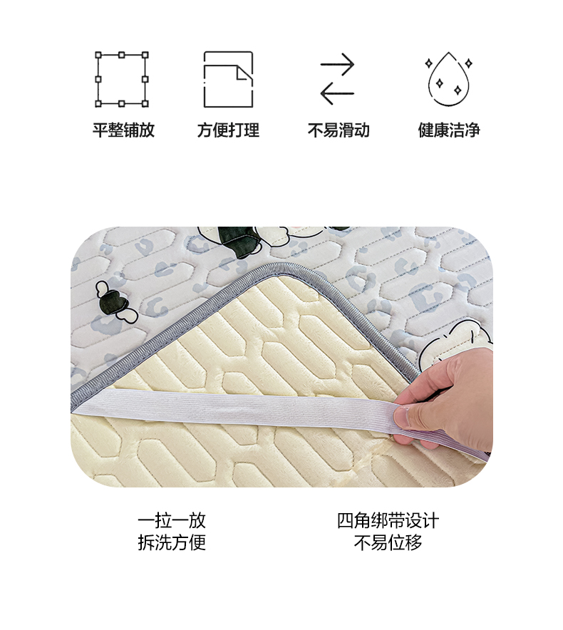 (总)摩妮卡 2026新款水洗棉夹棉防水床褥床垫款三件套,几何-卡其,几何-奶白,几何-浅粉,几何-天蓝