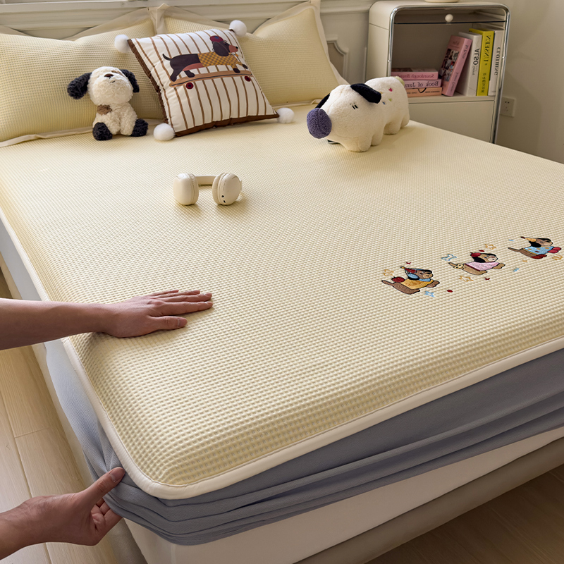 莱家富 2026新款A类乙纶冰豆豆凉席冰丝席-华夫格绣花床笠 兔免星人