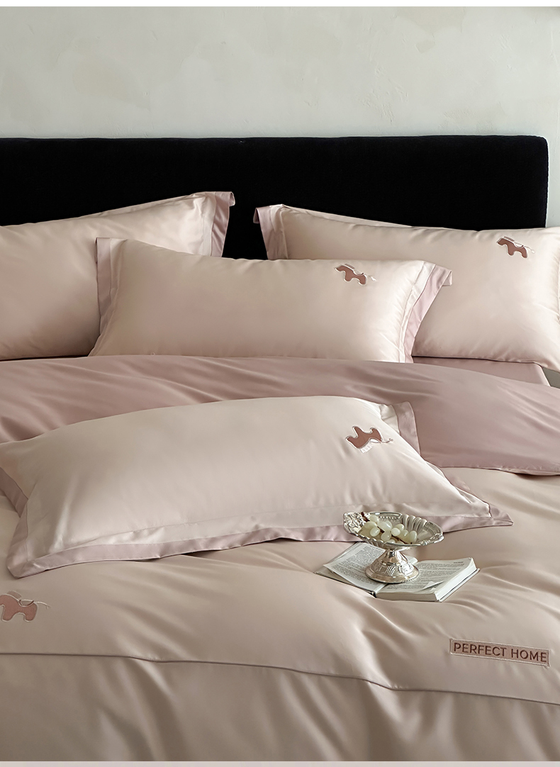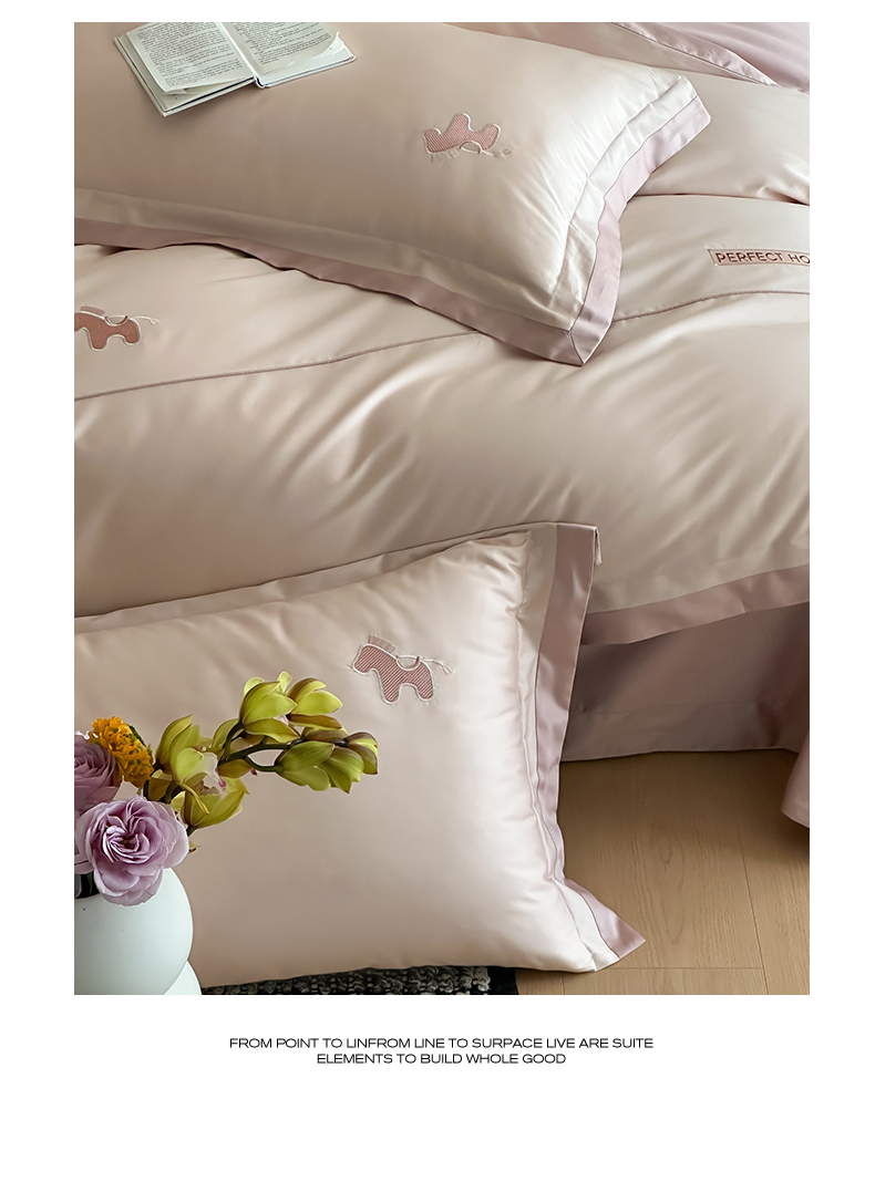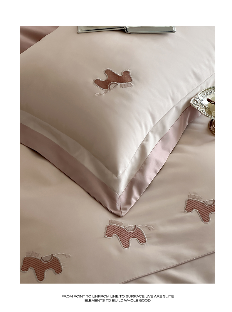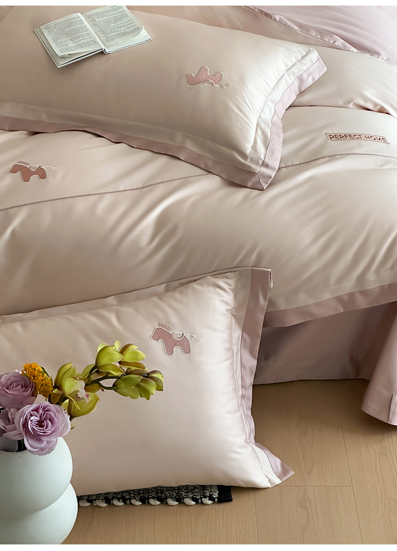 商品名称:名品优仓 2026新款长绒棉50s全棉纯棉刺绣撞色宽边款四件套-马上有钱 马上有钱-雅灰粉