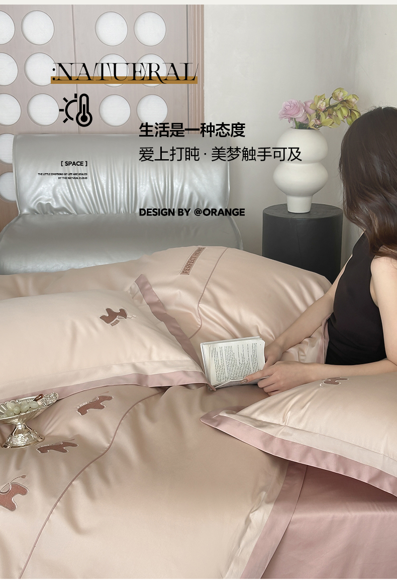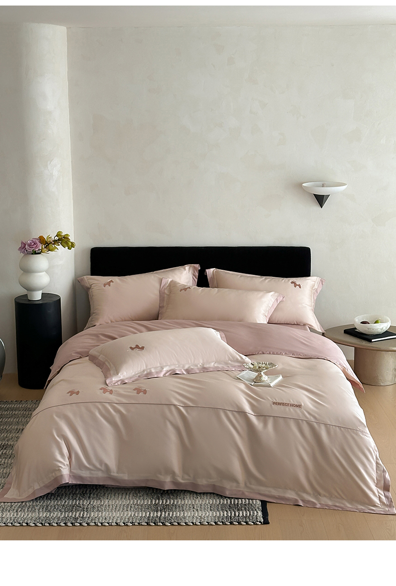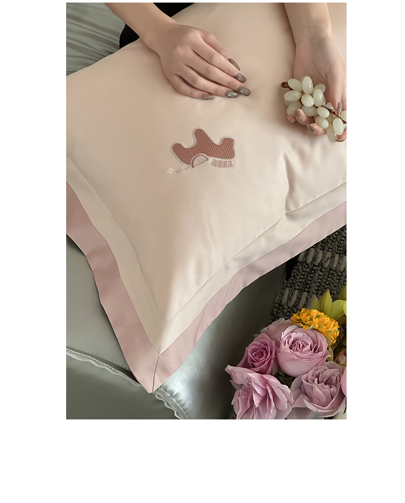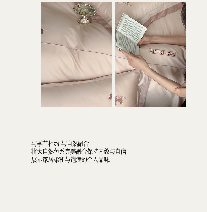 商品名称:名品优仓 2026新款长绒棉50s全棉纯棉刺绣撞色宽边款四件套-马上有钱 马上有钱-雅灰粉