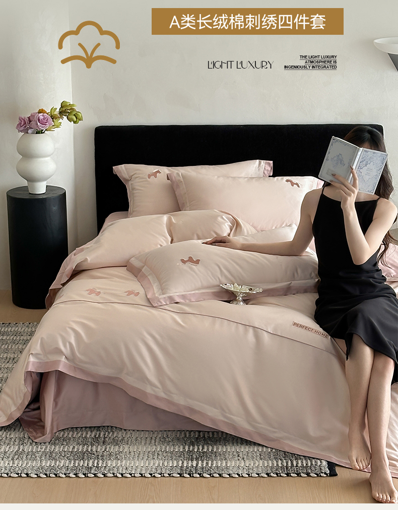 (总)名品优仓 2026新款长绒棉50s全棉纯棉刺绣宽边款四件套-花栖,花栖-公主粉,花栖-梦幻紫,花栖-浅妃灰,花栖-浅云蓝,花栖-清新绿,花栖-肉肉粉
