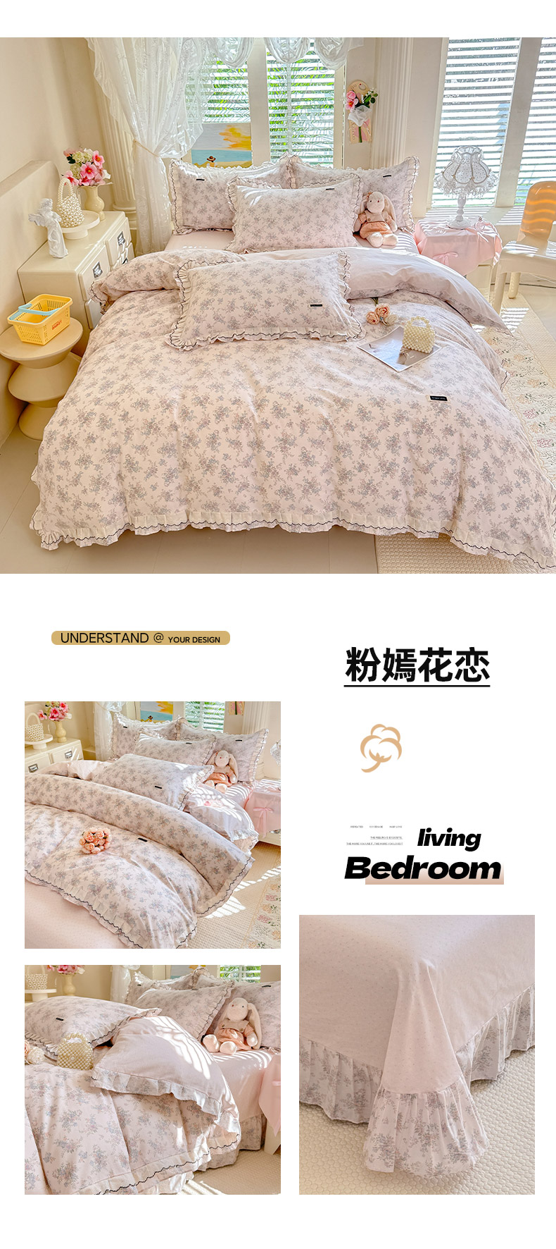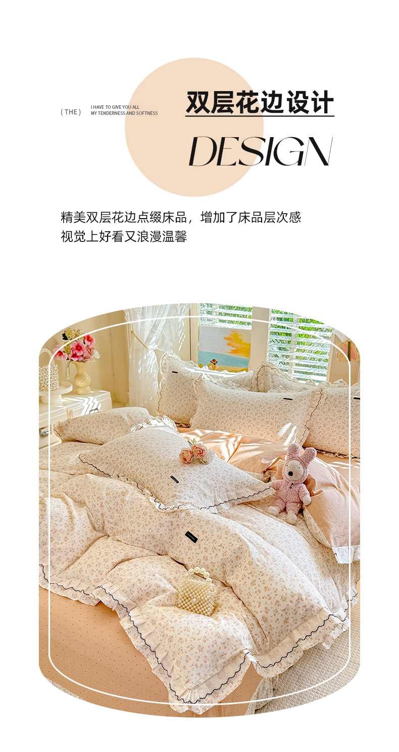 (总)艾唯希2025新款全棉小香风工艺四件套纯棉小花边碎花被套韩式公主风,初朵,春漾,漫丁蔷薇,觅秋,密玲花语,慕归十里,小青藤-米,雅集,樱花