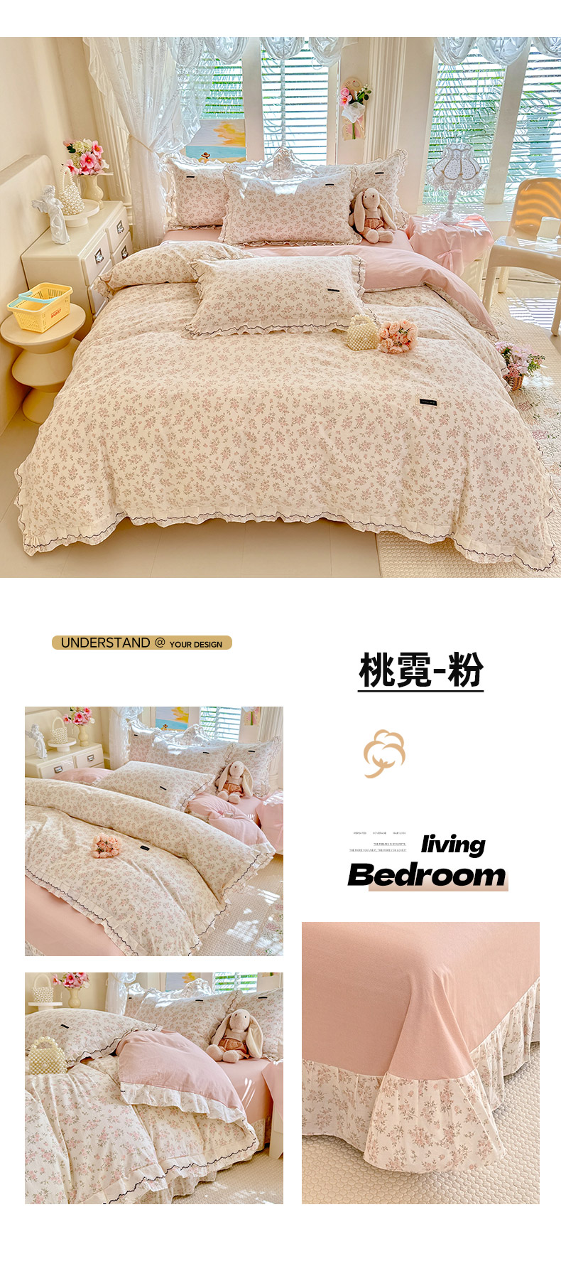 (总)艾唯希家纺 2026新款全棉双层花边工艺四件套-第二批,凝望,樱时-蓝紫,粉嫣花恋,桃霓-粉,云琳月影,艾菲妮,五月故事,樱桃香,樱时-粉
