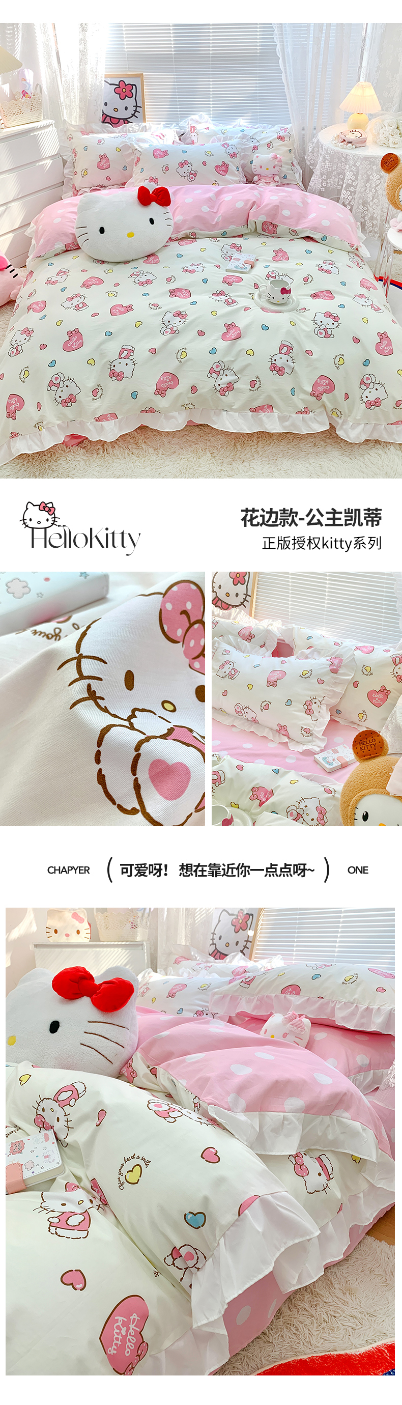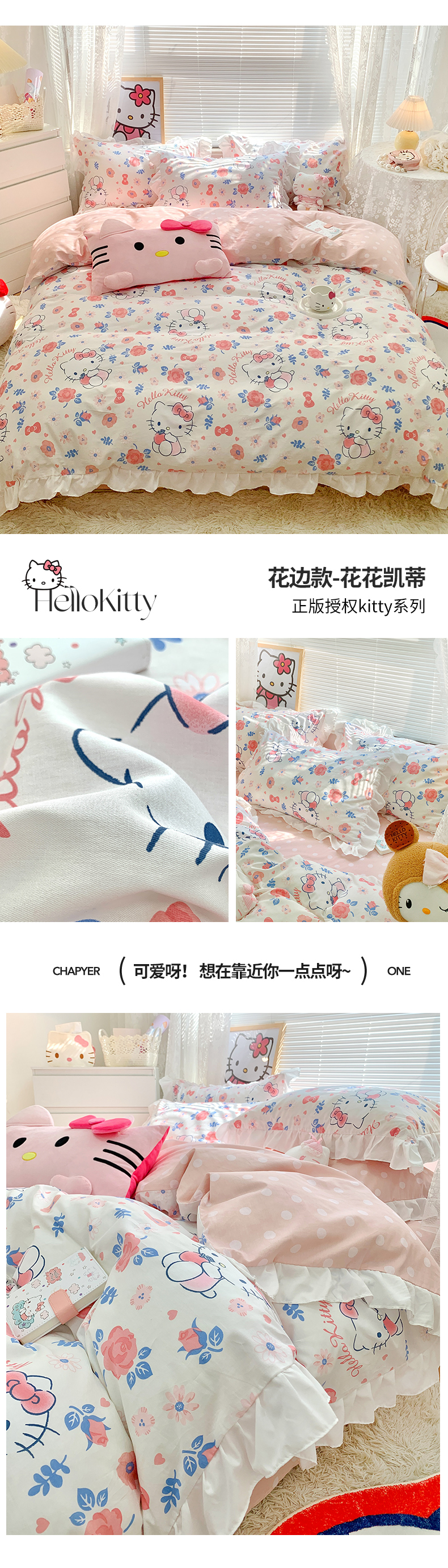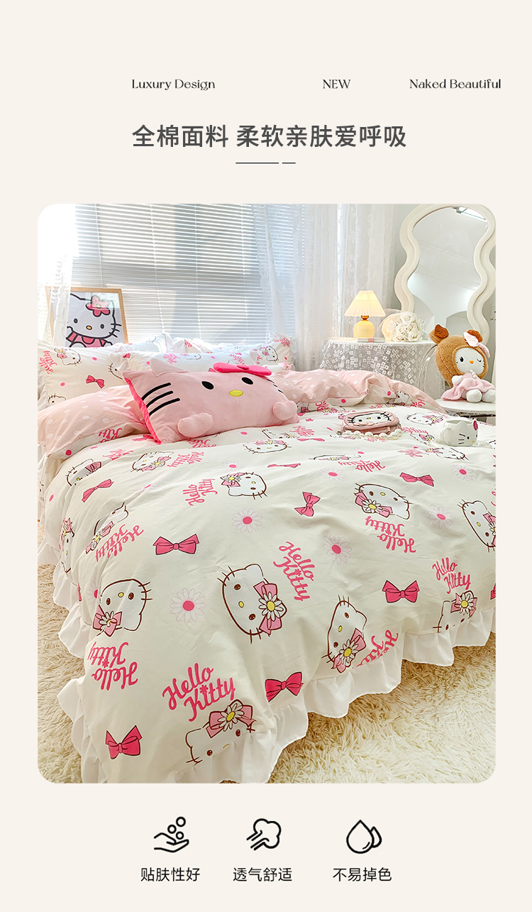 当前位置: 91家纺网 > 商品网购 > 床品套件 > 四件套 > 全棉普通四件套 > 朵希曼 2026新款全棉纯棉三丽鸥花边款四件套 花边款-花花凯蒂