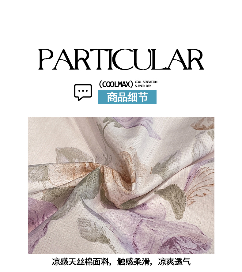 商品名称:佳品居 2026新款凉感天丝棉印花系列水洗真丝夏被四件套 伊莉莎-粉