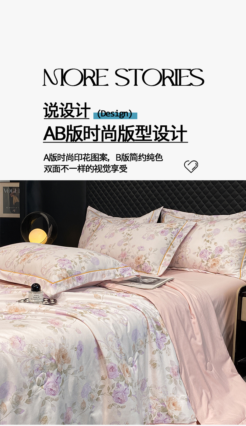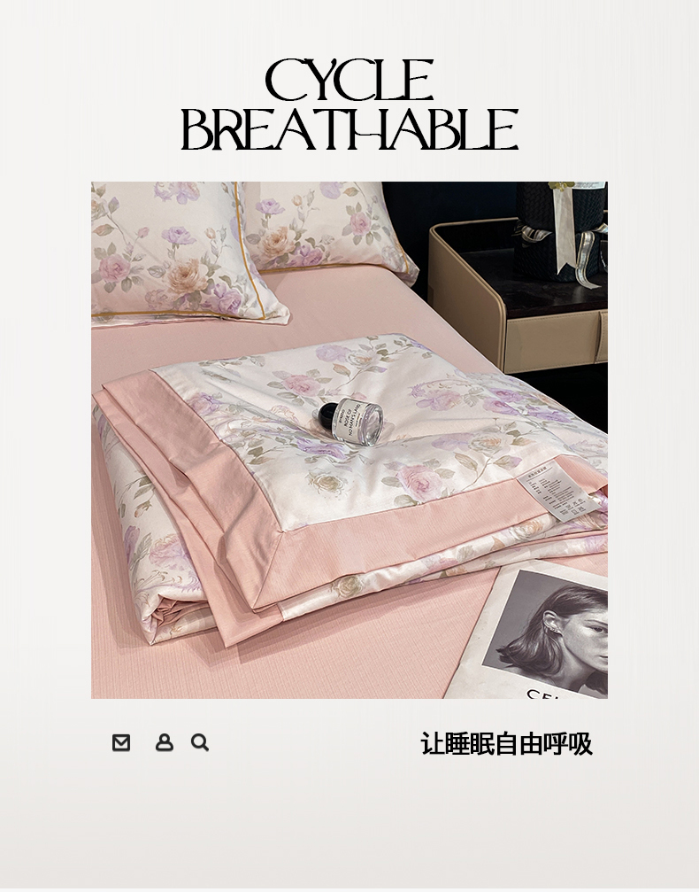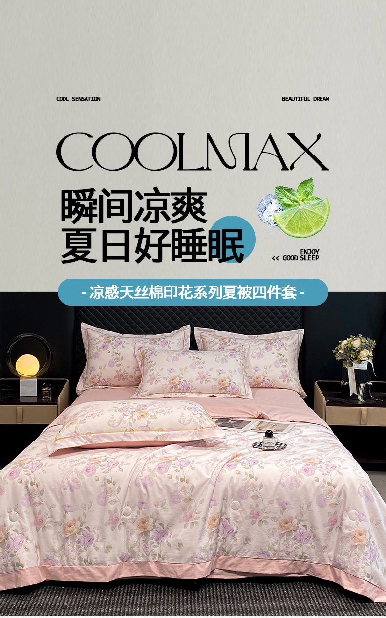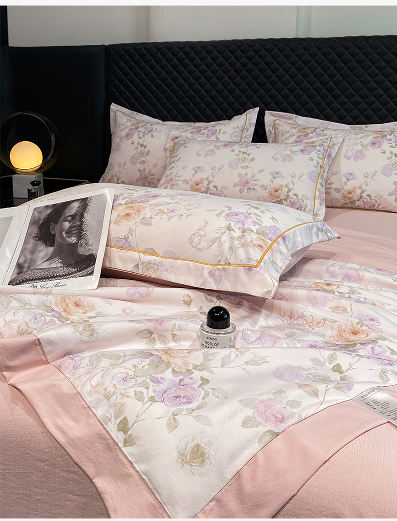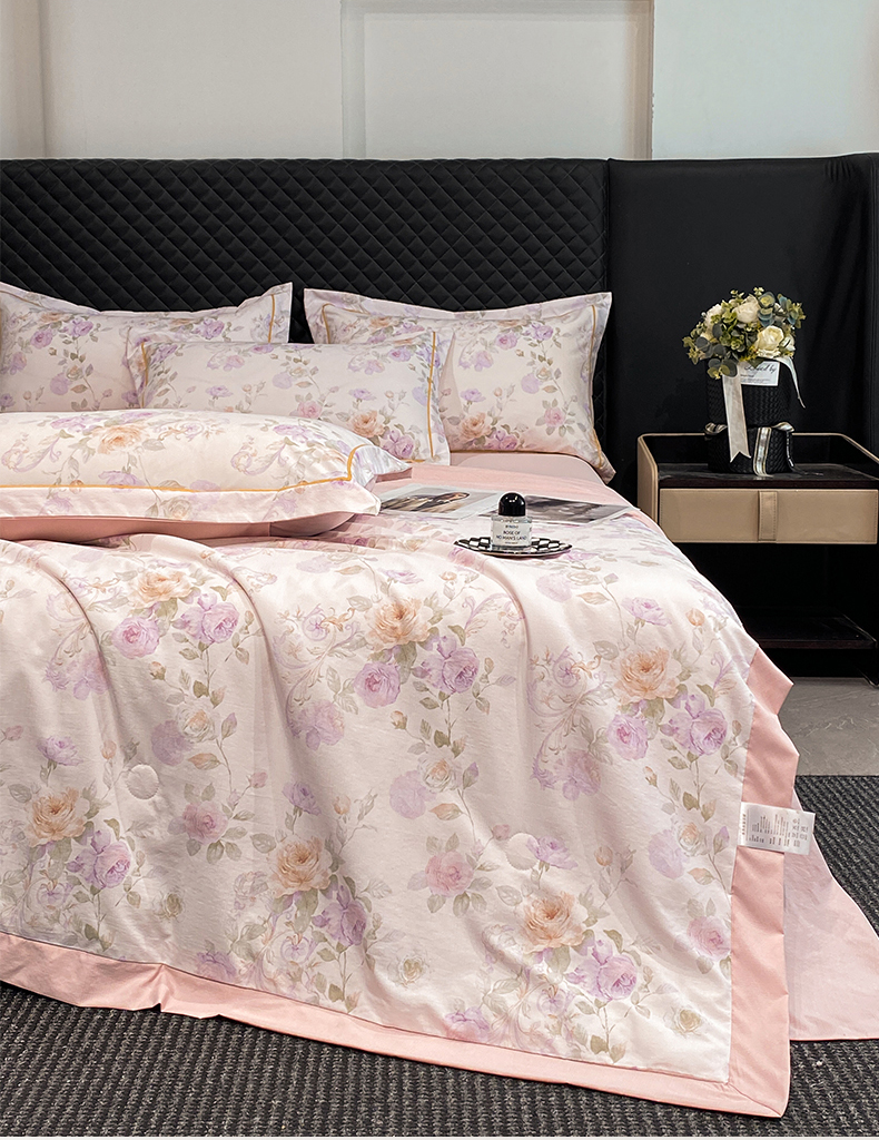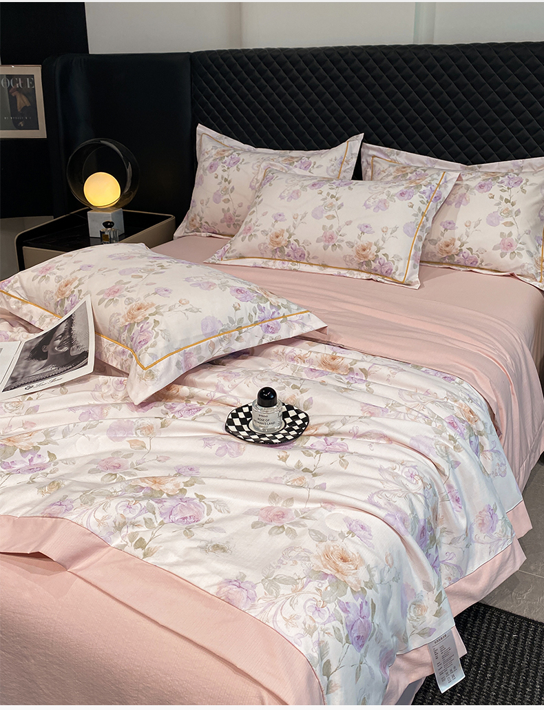 佳品居 2026新款凉感天丝棉印花系列水洗真丝夏被四件套 伊莉莎-粉