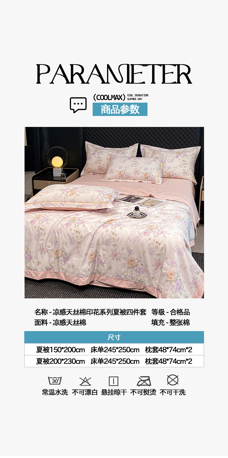 200*230cm四件套(夏被+床单+两只枕套)