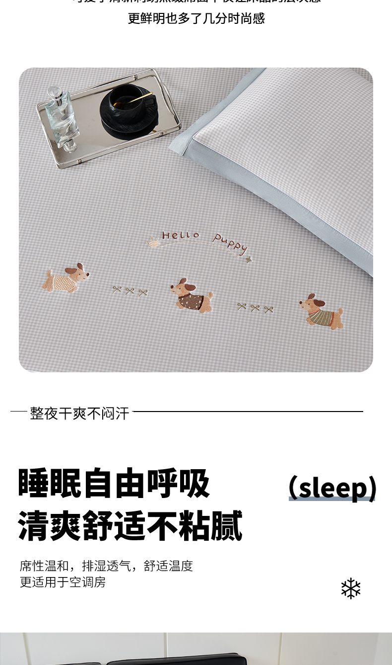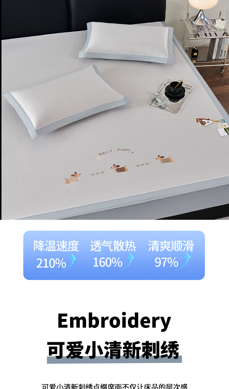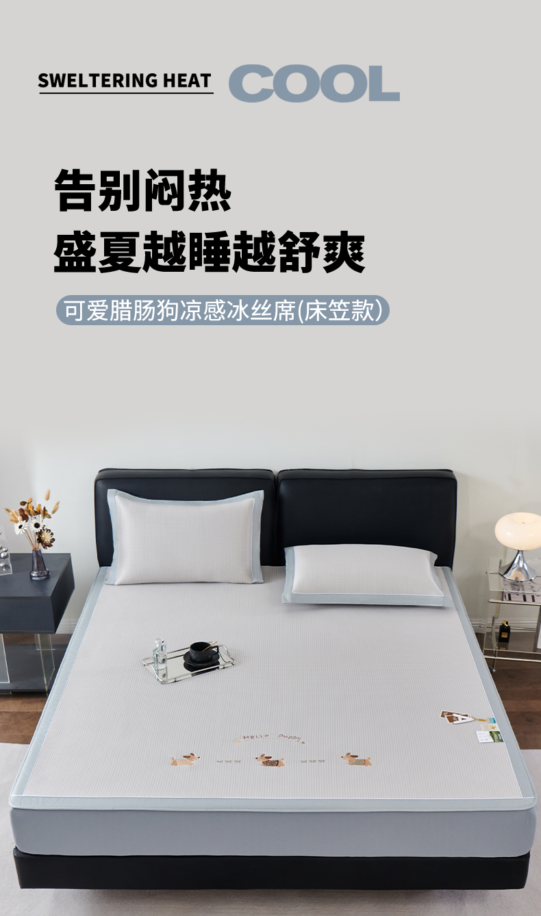 商品名称:小牛席业 2026新款腊肠狗绣花凉感冰丝席凉席席子-床笠款 腊肠狗-灰色