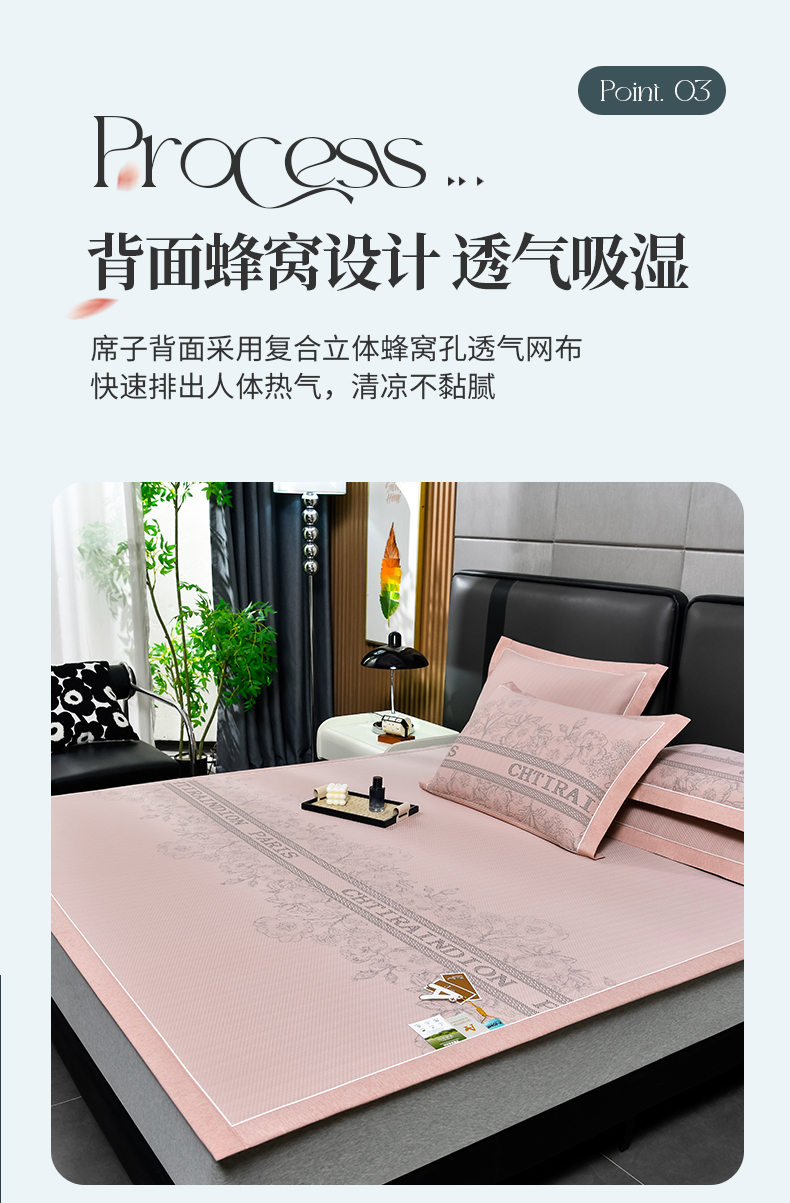 (总)小牛席业 2026新款PE凉感轻奢赫本提花冰丝席凉席席子,粉色,灰色,蓝色,抹茶,香槟