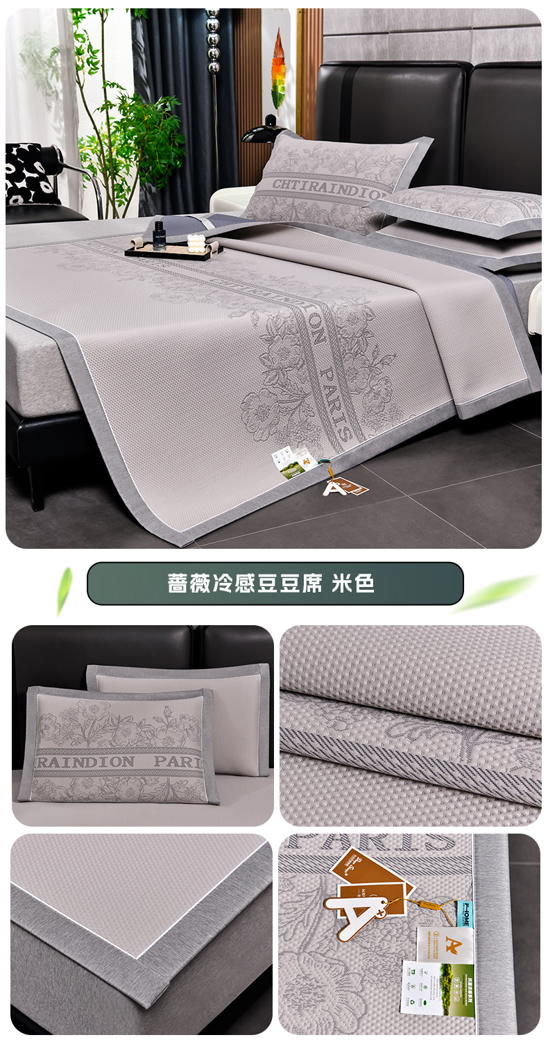 商品名称:小牛席业 2026新款蔷薇冷感豆豆席系列凉席席子 蔷薇-绿色