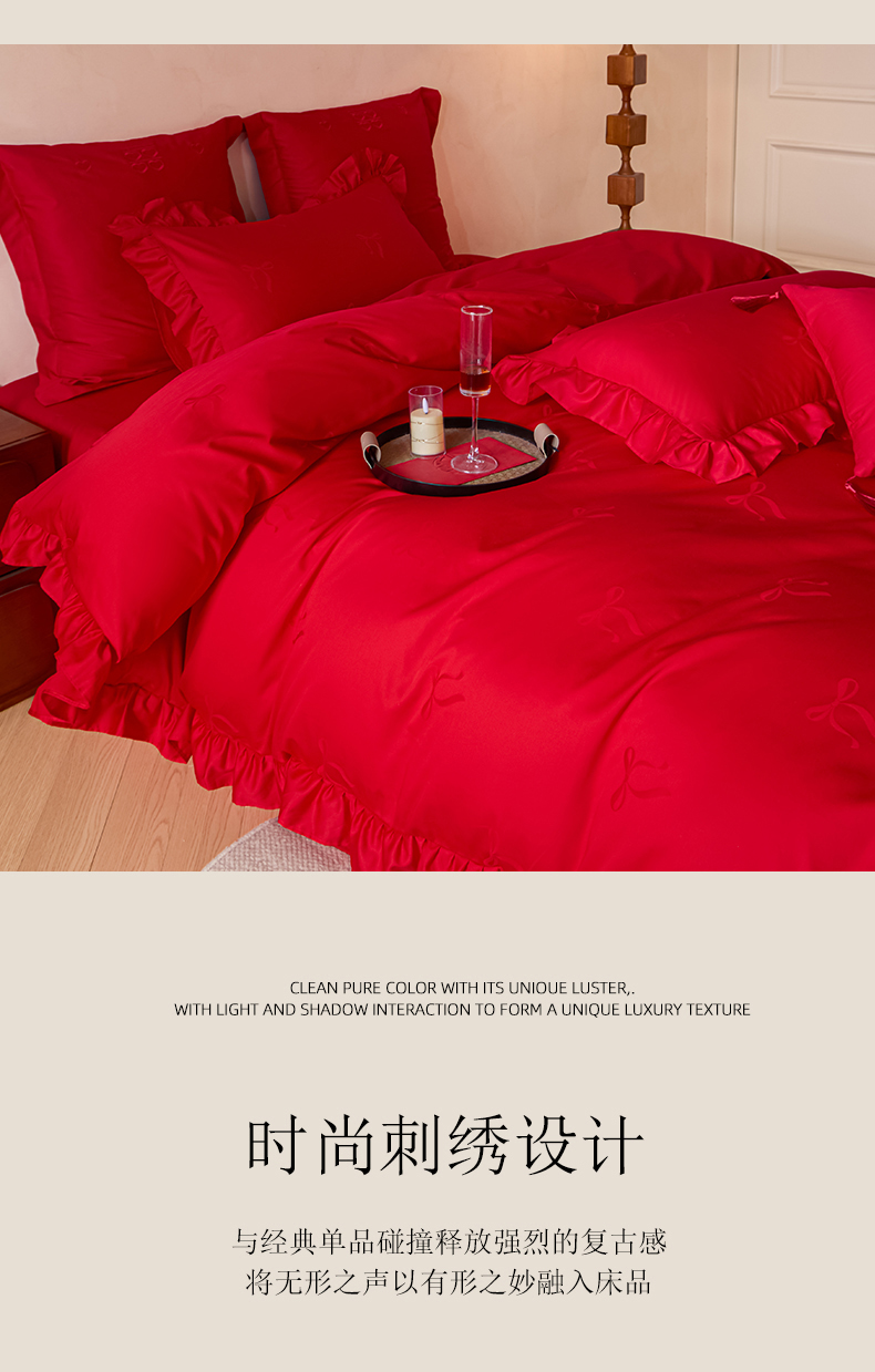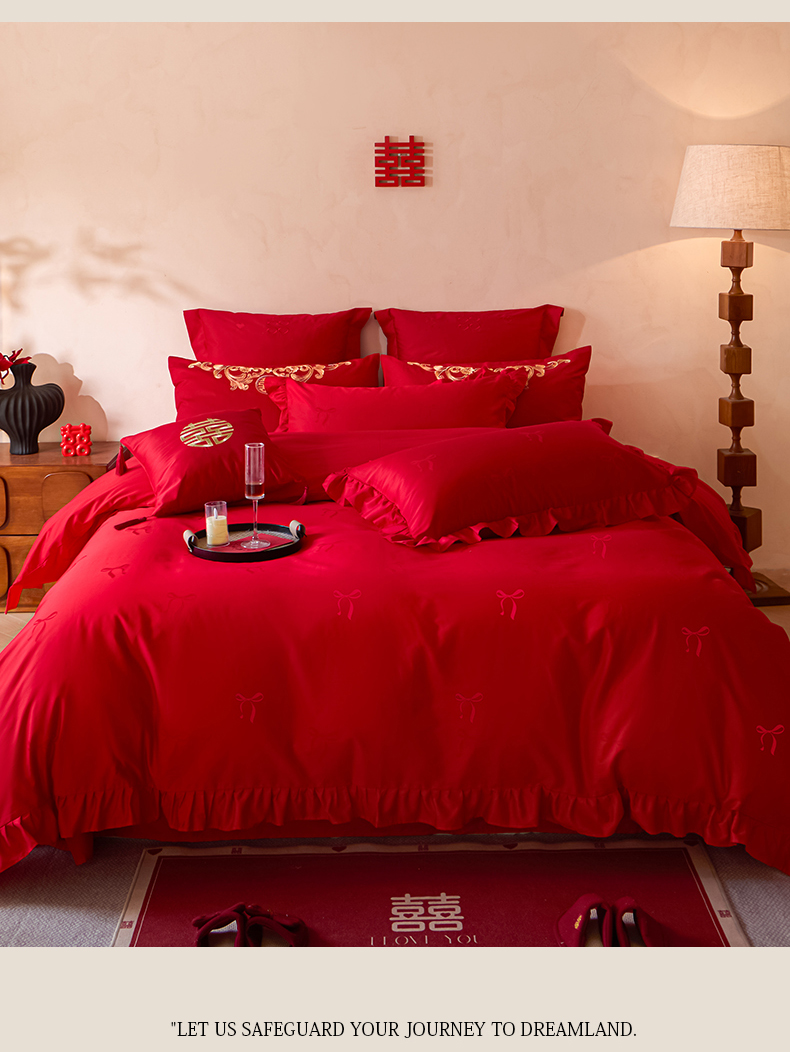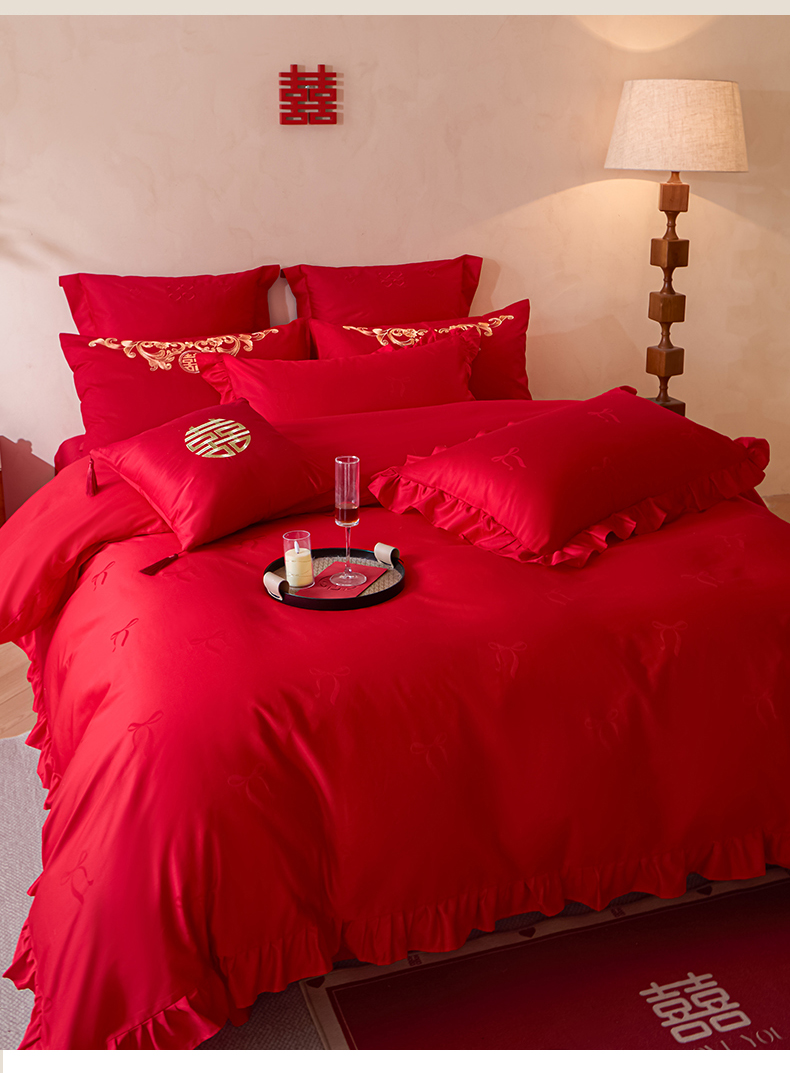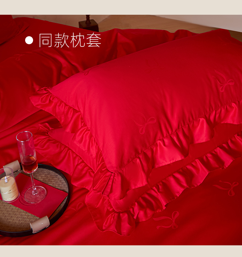 当前位置: 91家纺网 > 商品网购 > 床品套件 > 多件套 > 多件套 > 东方合美(原:皇家传奇) 2026新款长绒棉轻奢婚庆四件套 蝴蝶结花边