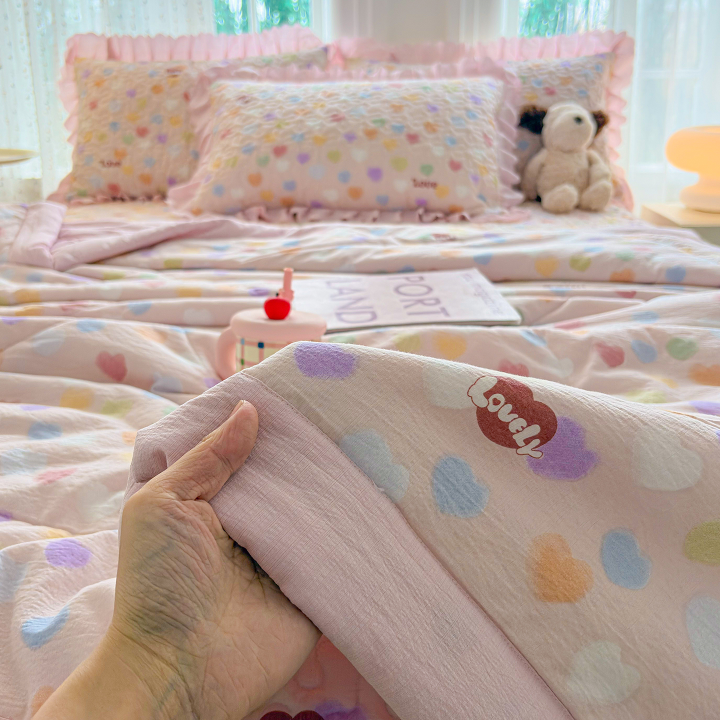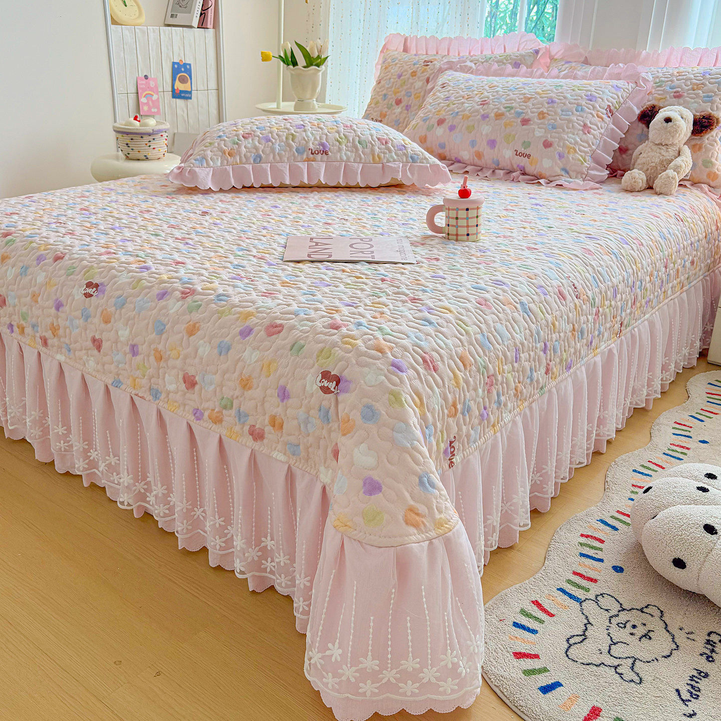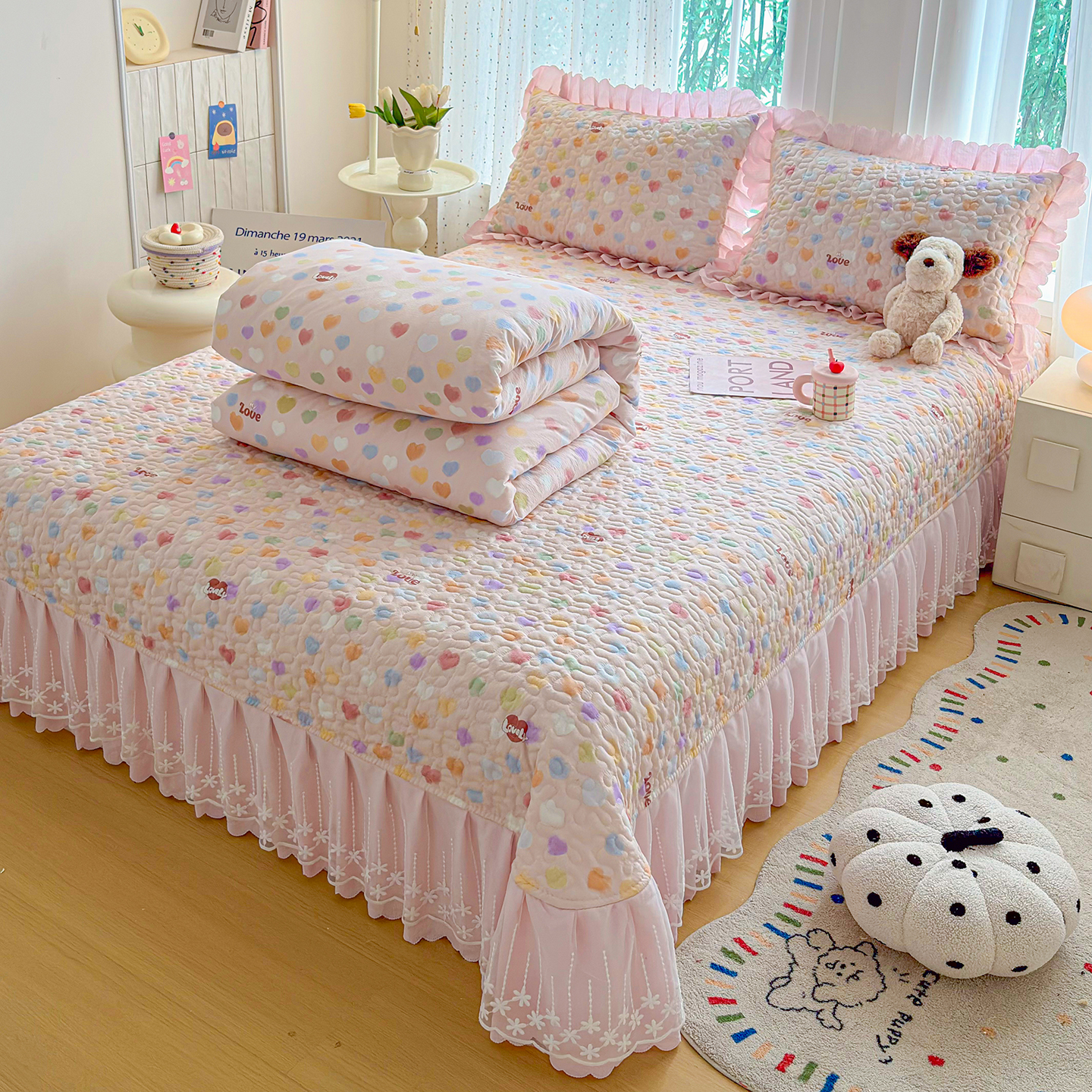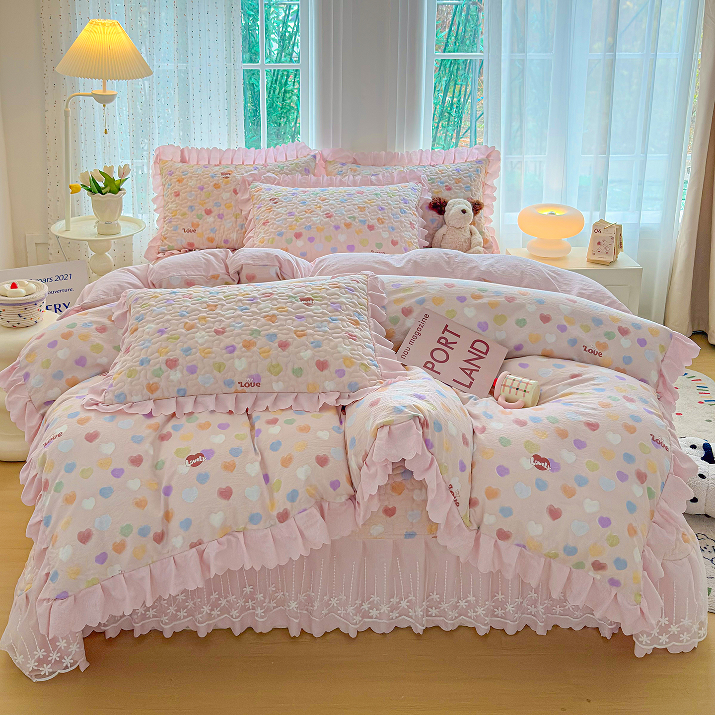 当前位置: 91家纺网 > 商品网购 > 床品套件 > 四件套 > 其它四件套 > 绒耀家纺 2026春夏直播爆款泡芙棉云感双层纱皱皱纱韩式花边床盖四件套 甜蜜爱恋
