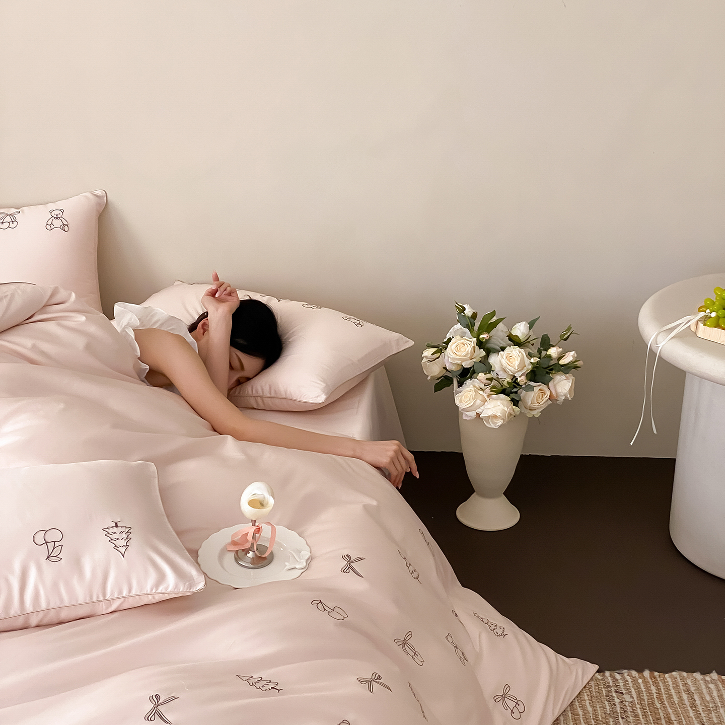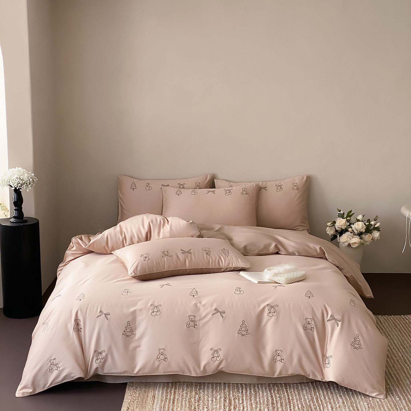 商品名称:曼布缇 2026新款长绒棉四件套-青春记忆(会员-20,券后308起) 青春记忆-浅粉