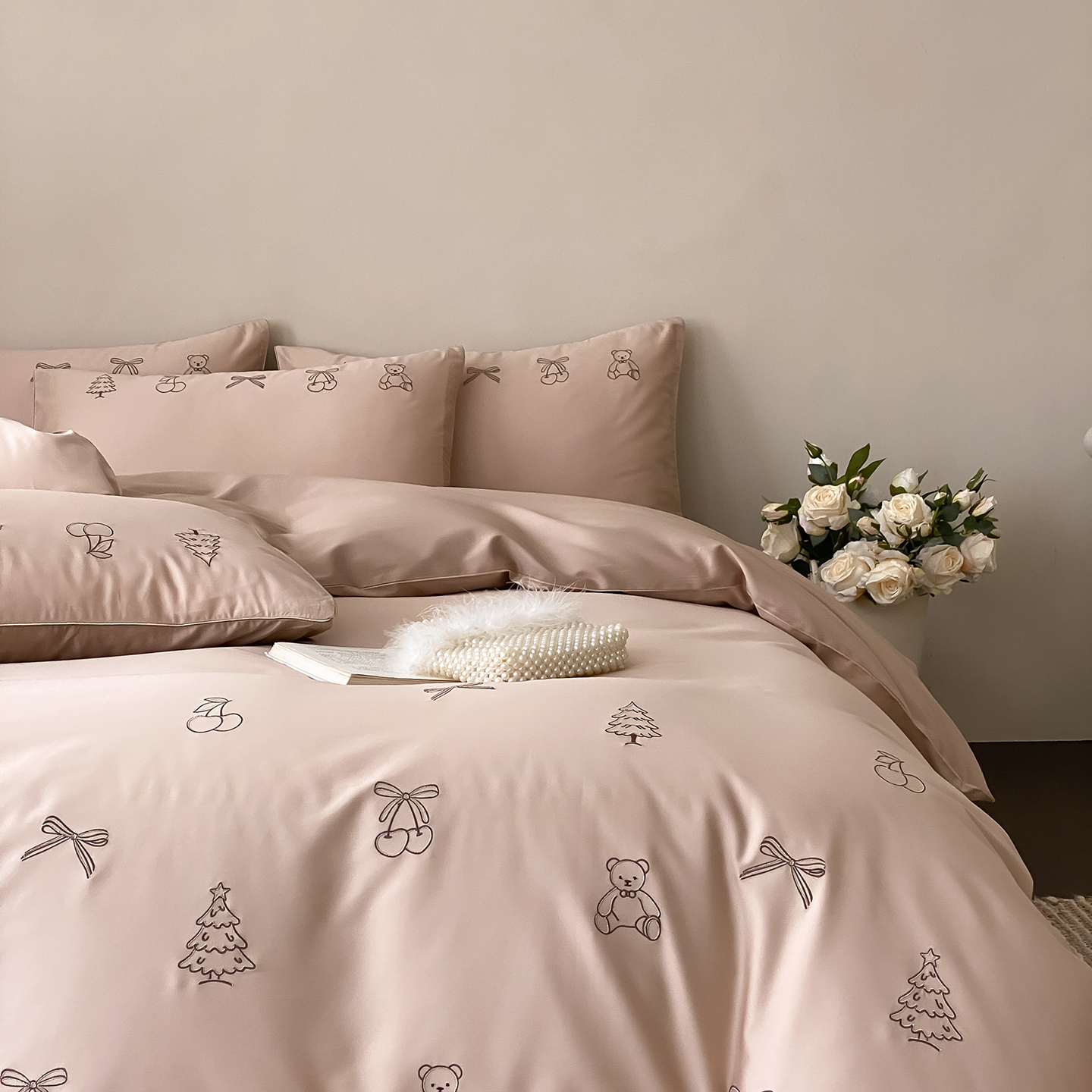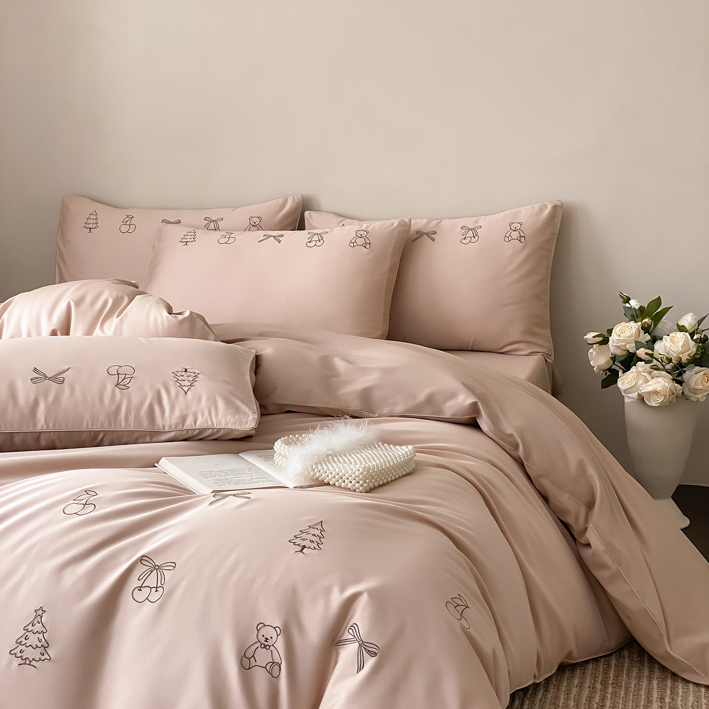 (总)曼布缇 2026新款长绒棉四件套-青春记忆(会员-20,券后308起),青春记忆-浅粉,青春记忆-香槟咖