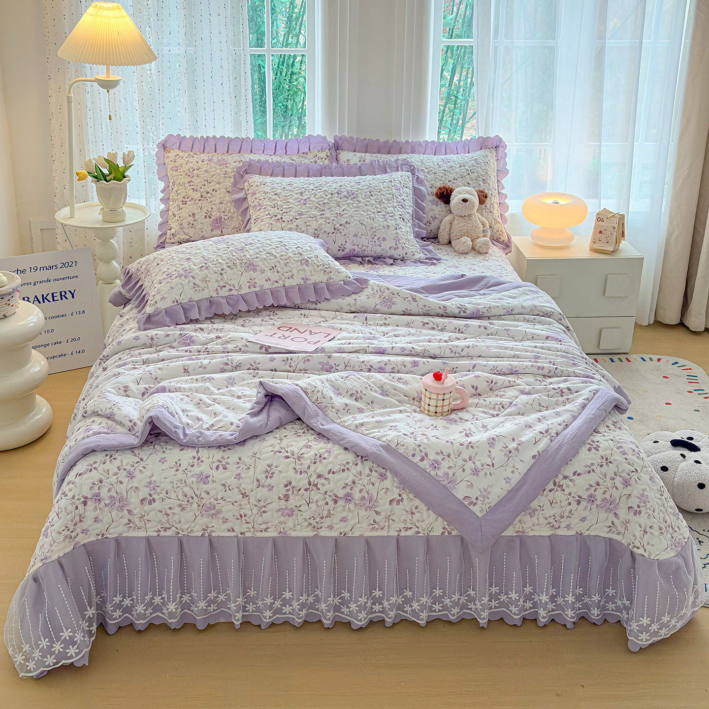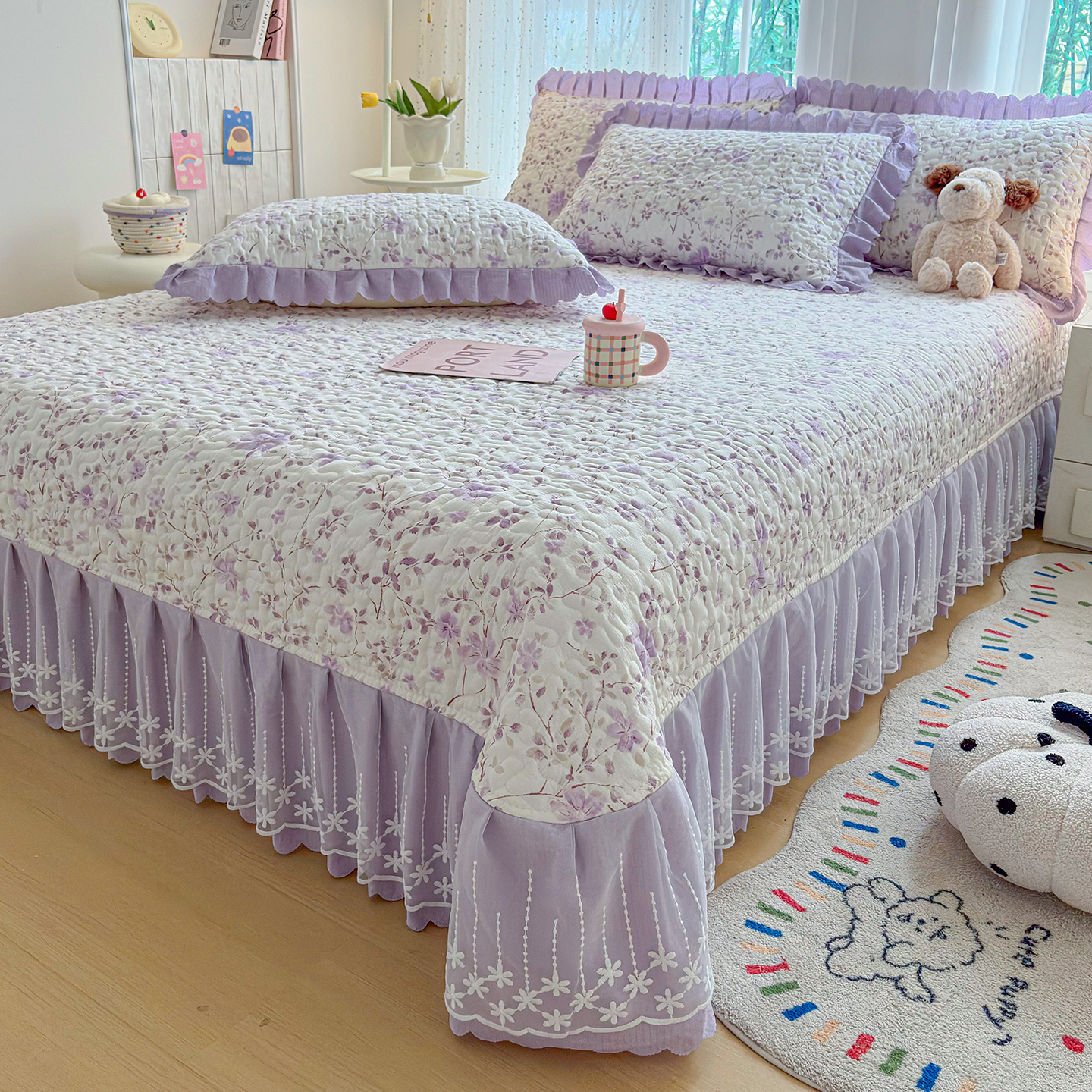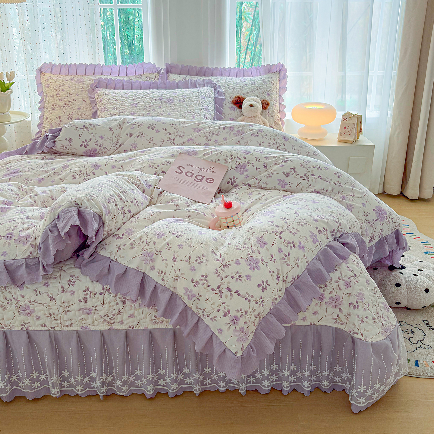 当前位置: 91家纺网 > 商品网购 > 床品套件 > 四件套 > 夏被四件套 > 绒耀家纺 2026春夏直播爆款泡芙棉云感双层纱皱皱纱韩式花边夏被四件套 紫薇