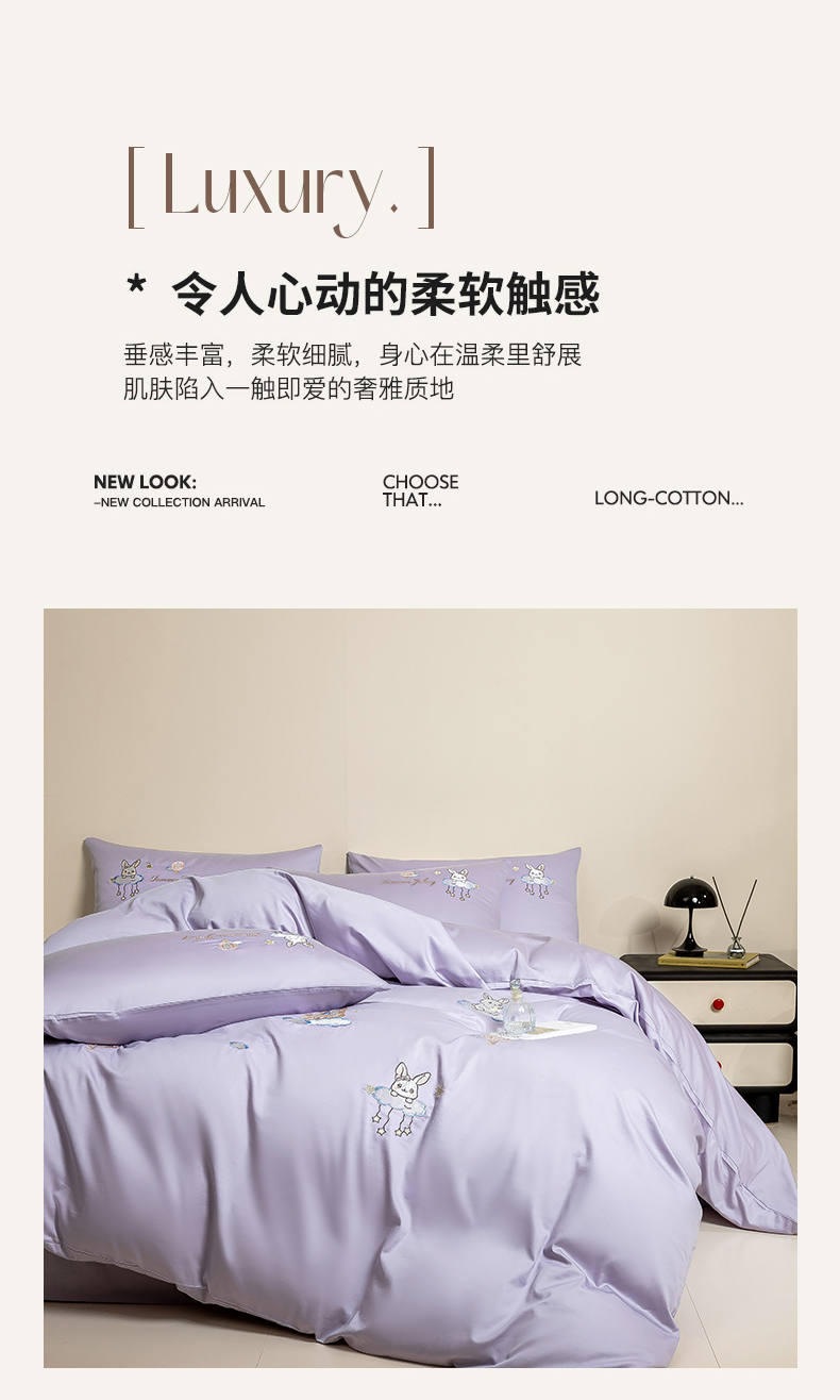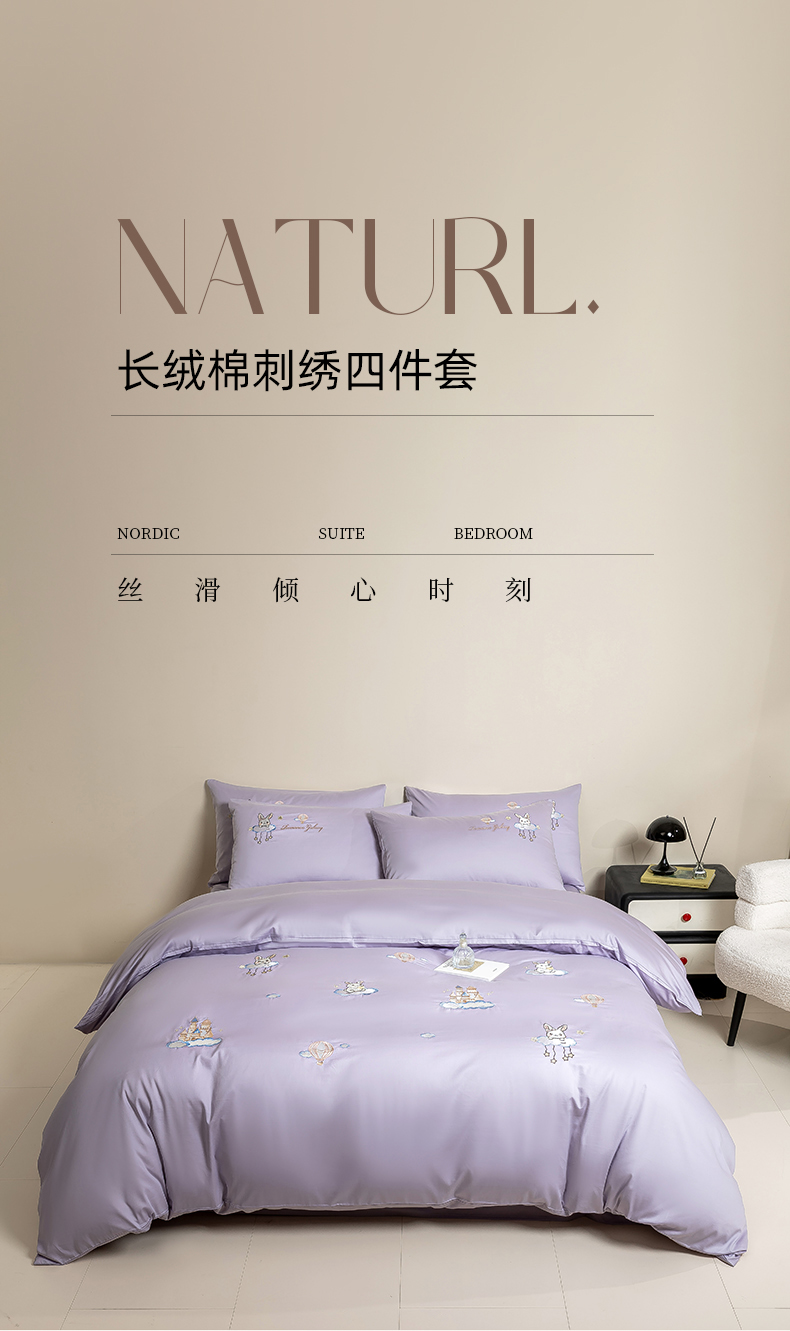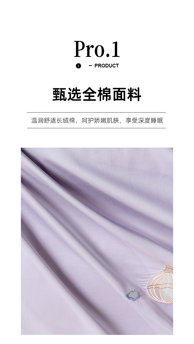 当前位置: 91家纺网 > 商品网购 > 床品套件 > 四件套 > 长绒棉四件套 > 绒掌柜家纺(品质焕新) 2026新款100S长绒棉纯棉精密刺绣四件套-云境系列-版权产品-礼盒装 云境-奶芋紫