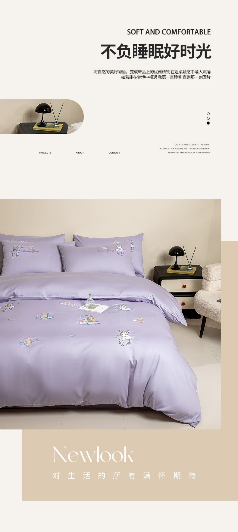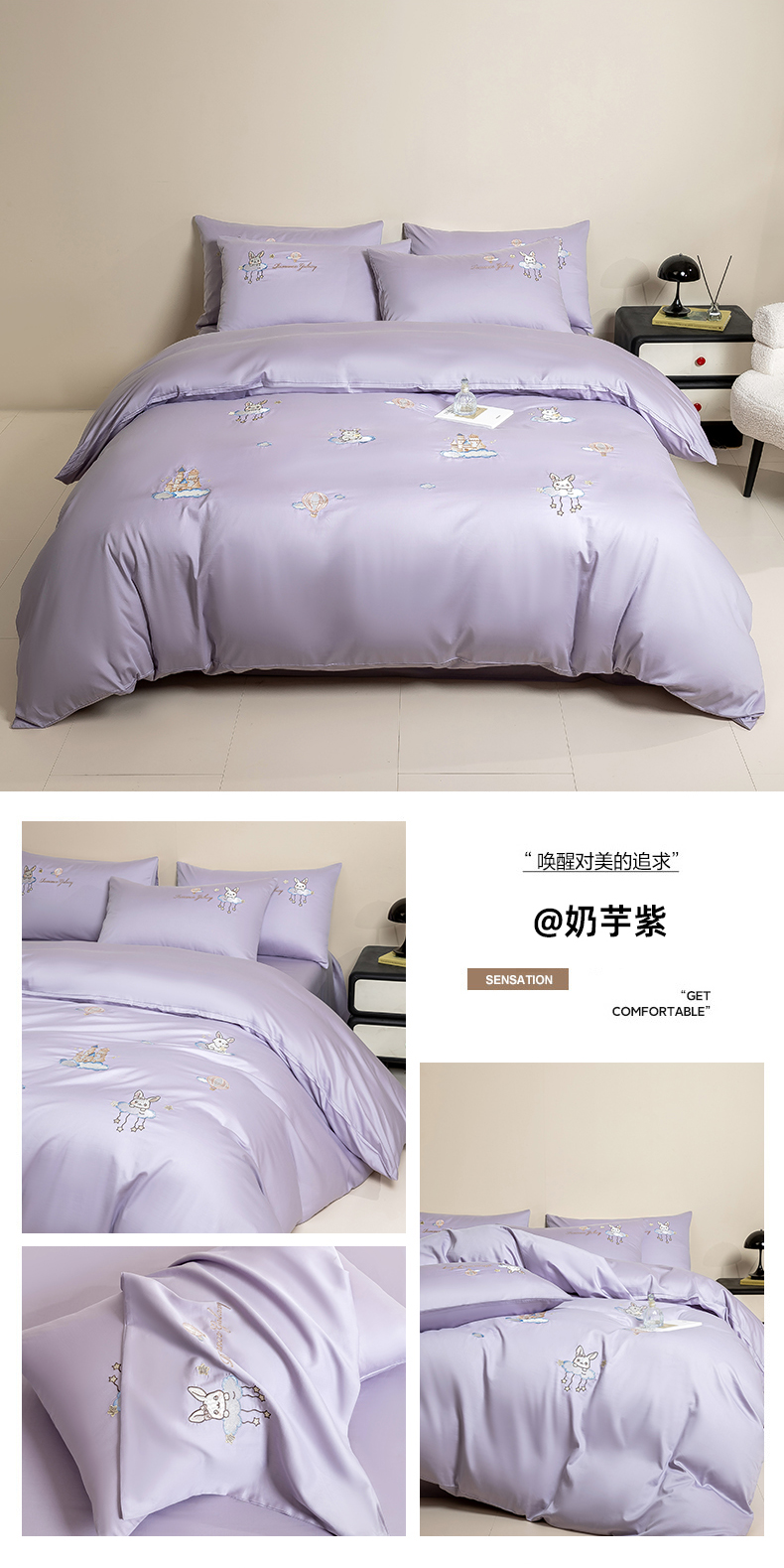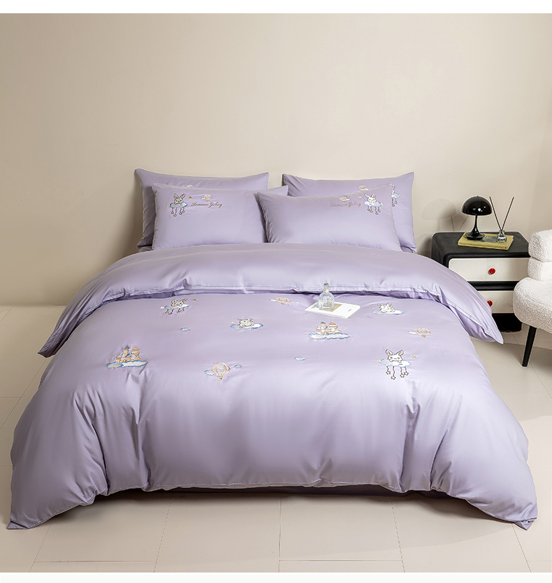 当前位置: 91家纺网 > 商品网购 > 床品套件 > 四件套 > 长绒棉四件套 > 绒掌柜家纺(品质焕新) 2026新款100S长绒棉纯棉精密刺绣四件套-云境系列-版权产品-礼盒装 云境-奶芋紫