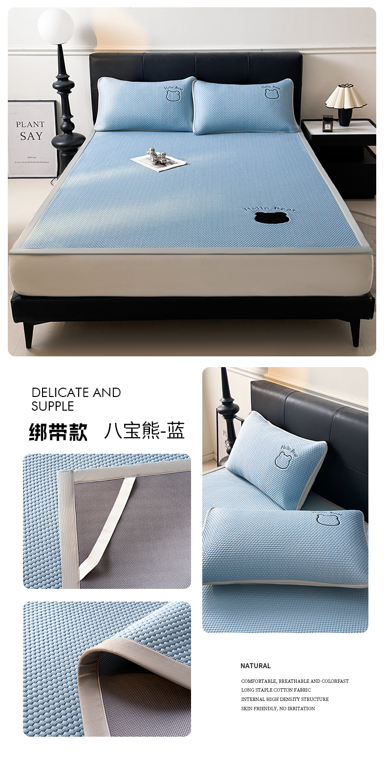 • 91家纺网 家纺一手货源 找家纺 梵朴 2026新款凉感PE冰豆豆贴布绣凉席-升级抗起球 八宝熊-蓝