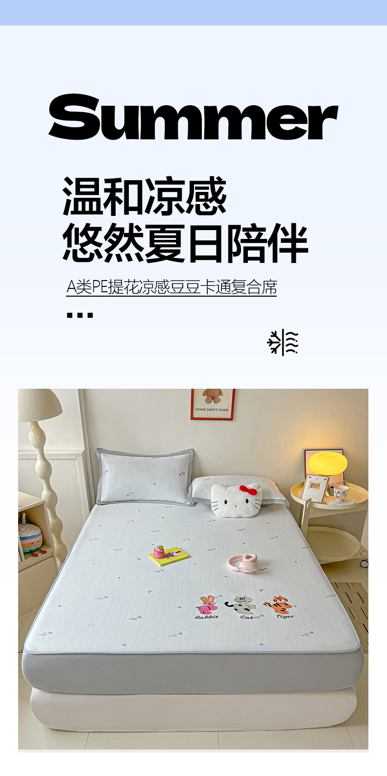 当前位置: 91家纺网 > 商品网购 > 床上用品 > 凉席 > 凉席套件 > 多乐家纺 2026新款星辰系列PE提花凉感豆豆卡通刺绣大包边复合凉席 小老虎-流星(床单款)