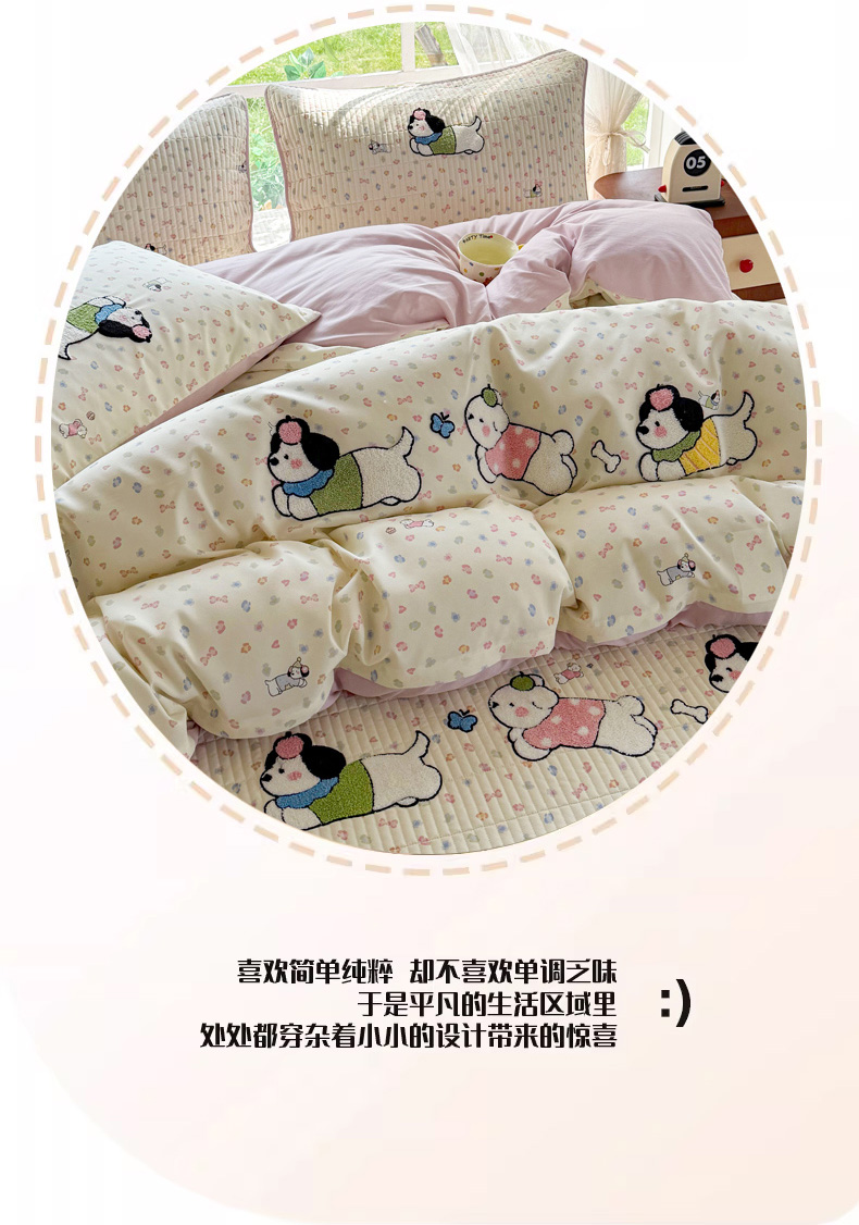 (总)恋佳居 2025新款卡通毛巾绣牛奶绒绣花四件套,花匠布布,可爱狗,萌趣,蘑菇与狗-粉,蘑菇与狗-紫,太空小恐龙,甜品时光,音乐派对,月亮天使