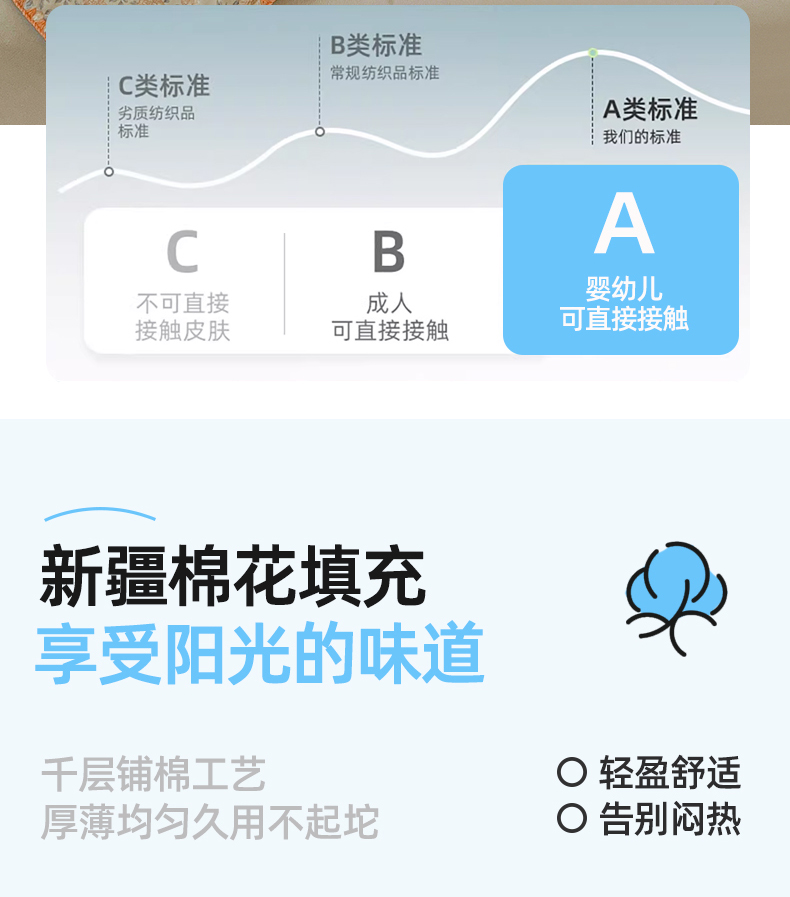 (总)阳光被业 2025亚朵同款A类针织棉大豆被春秋被四季被A类针织棉芯秋冬保暖被子,朦胧黄,深睡蓝,柔云粉