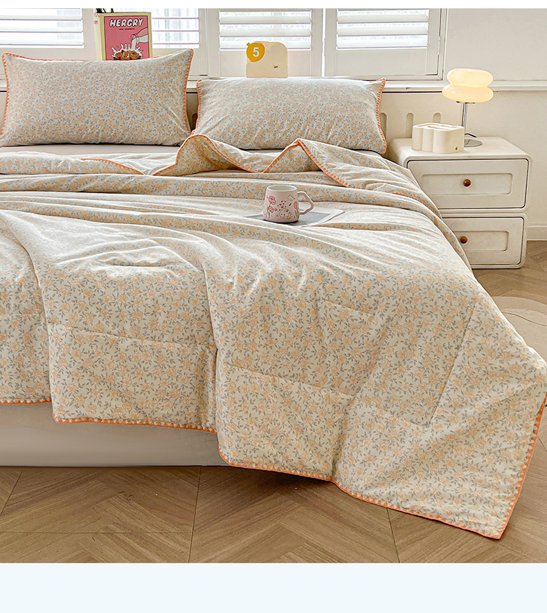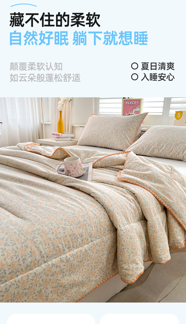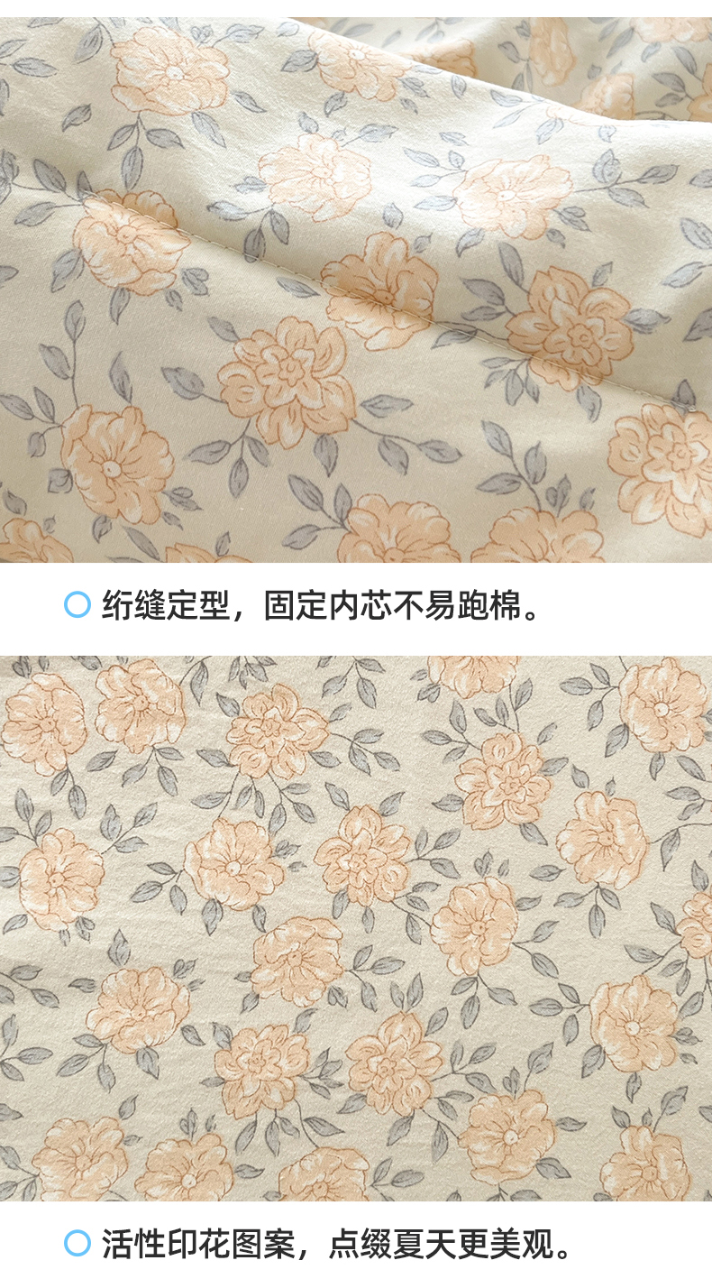 商品名称:阳光被业 2026新款100%棉花双层纱夏被新疆棉花空调被可机洗夏凉被绣边踩棉工艺 花开富贵