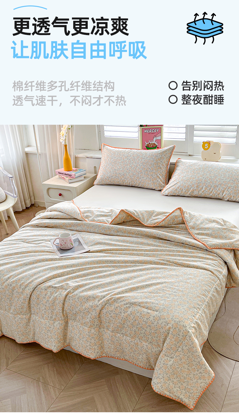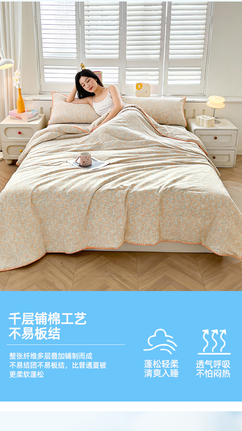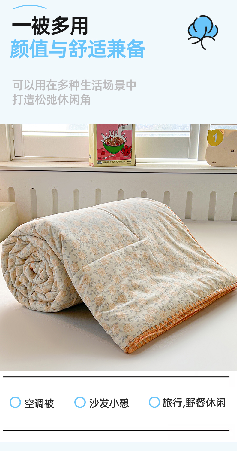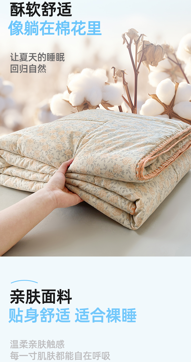 阳光被业 2026新款100%棉花双层纱夏被新疆棉花空调被可机洗夏凉被绣边踩棉工艺 花开富贵