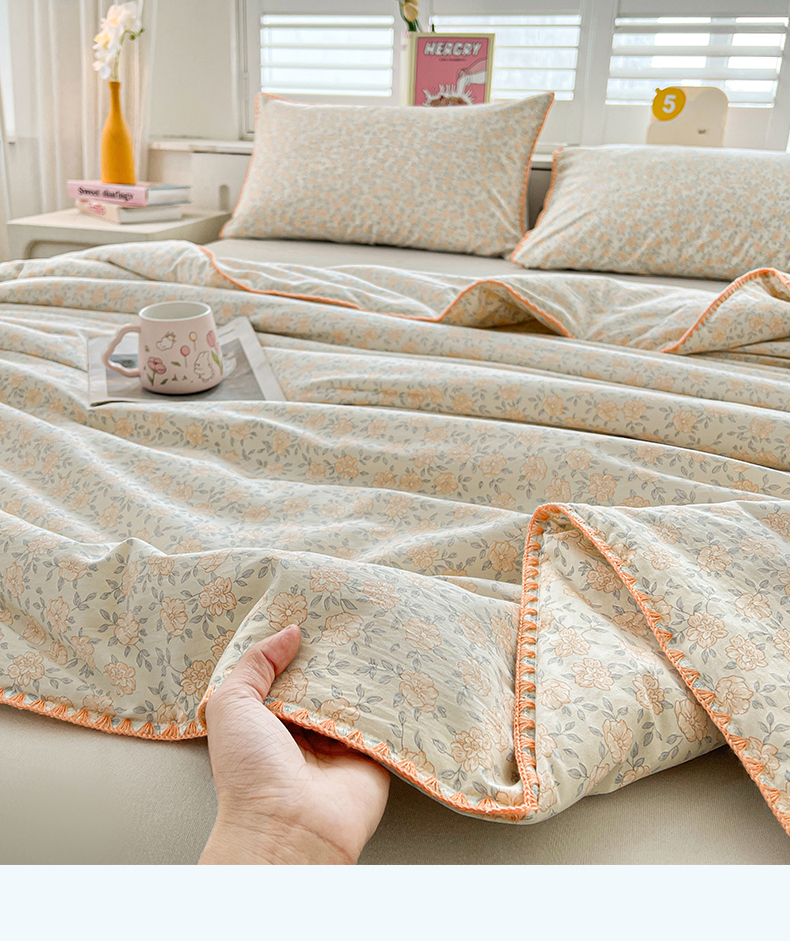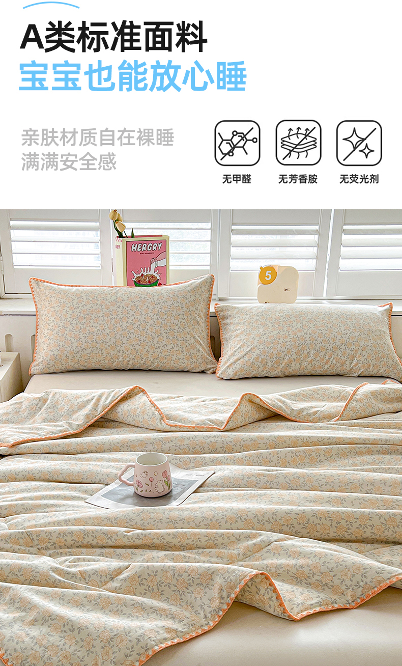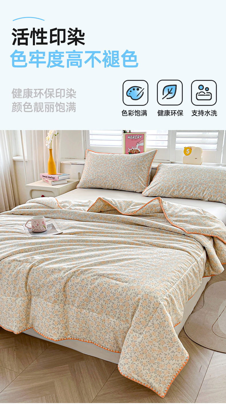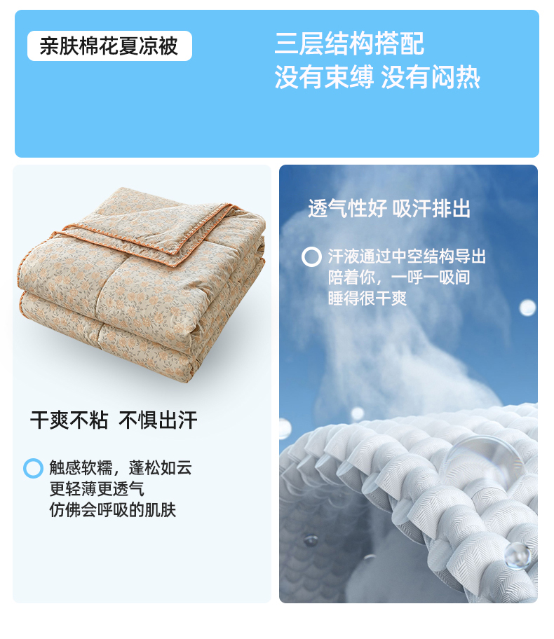 阳光被业 2026新款100%棉花双层纱夏被新疆棉花空调被可机洗夏凉被绣边踩棉工艺 花开富贵