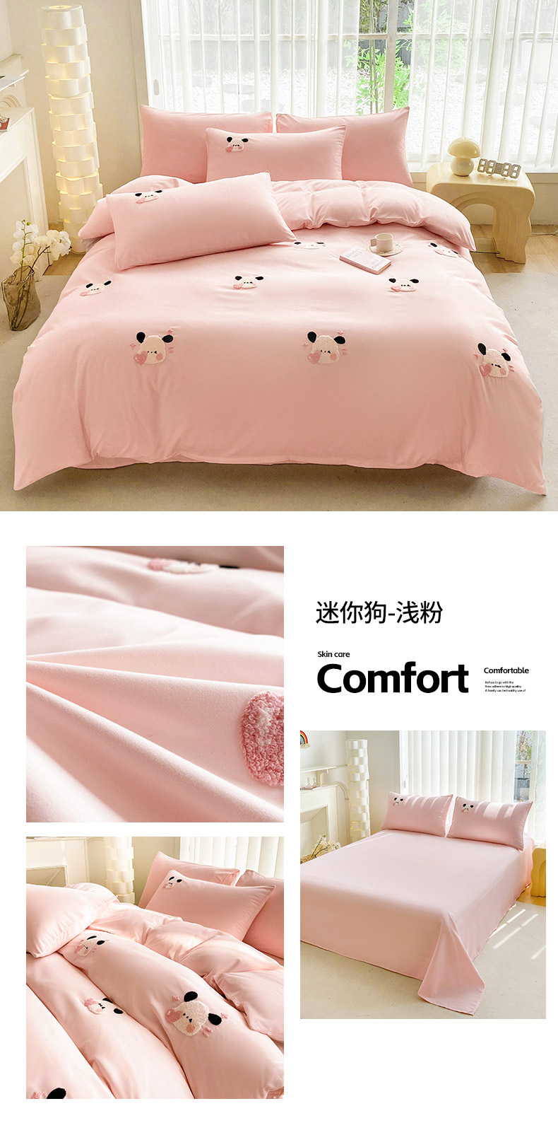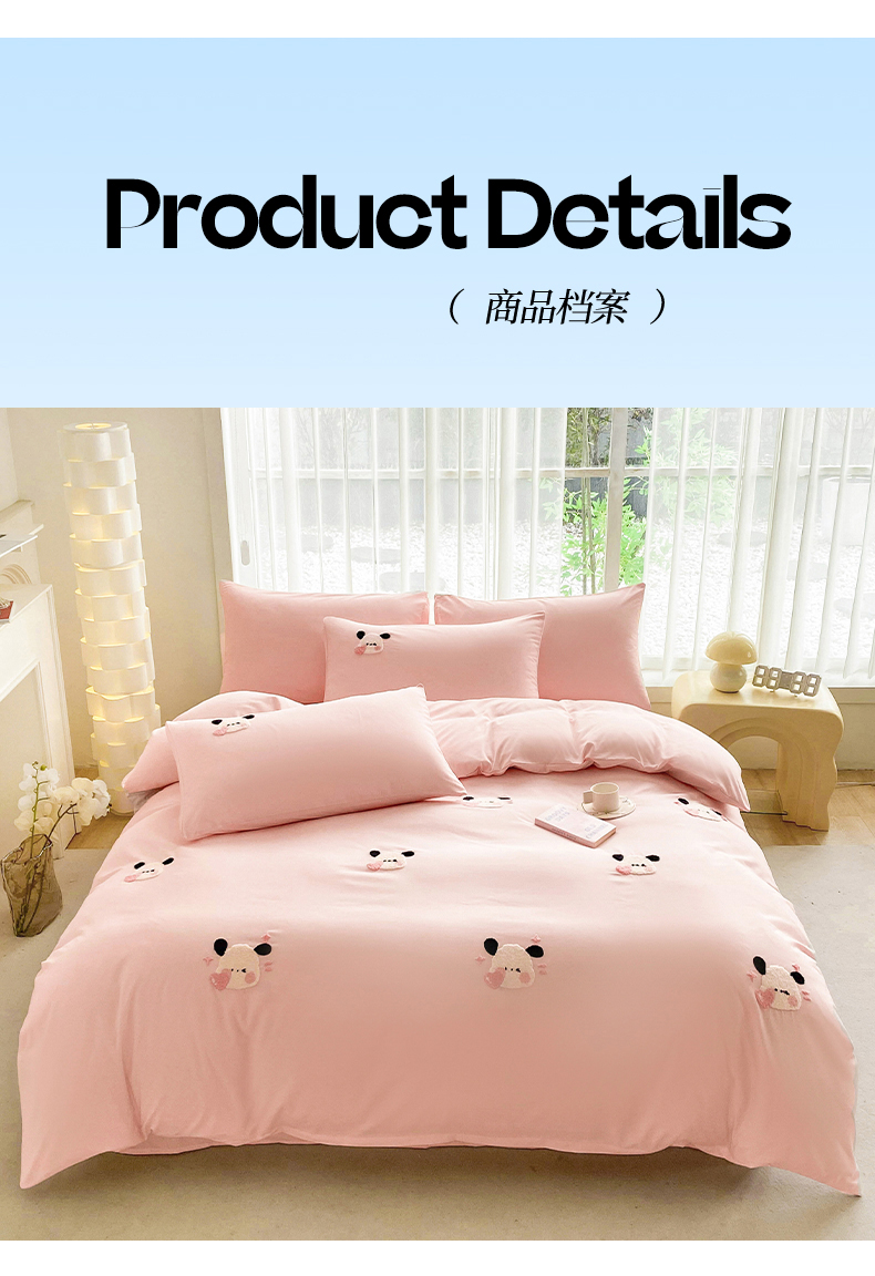 商品名称:眷恋家纺 2026新款卡通毛巾绣水洗棉四件套 小幸运-浅粉+紫