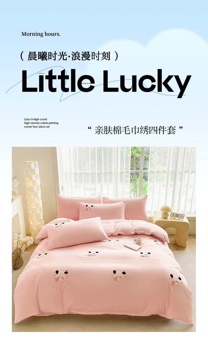 眷恋家纺 2026新款卡通毛巾绣水洗棉四件套 小幸运-浅粉+紫