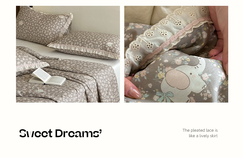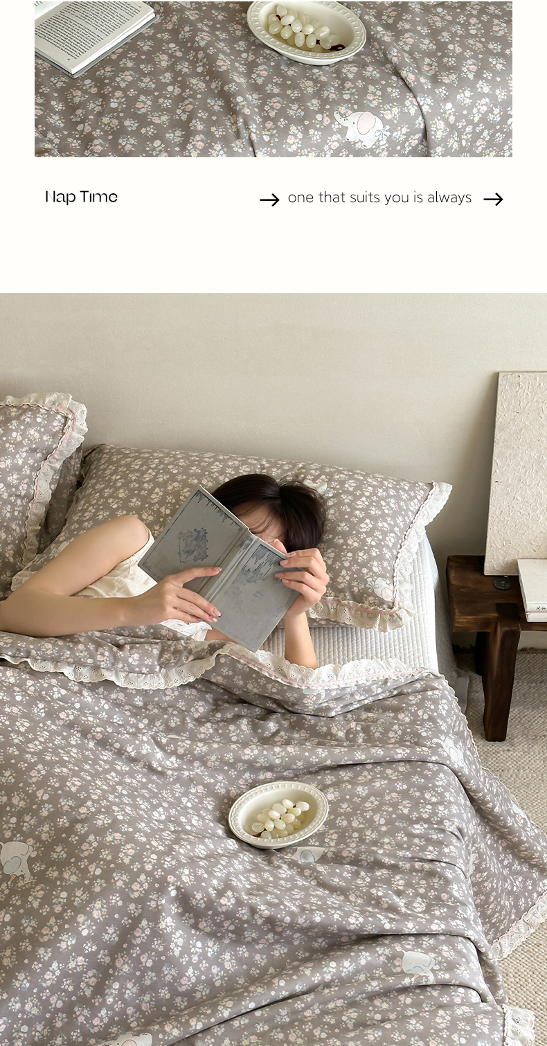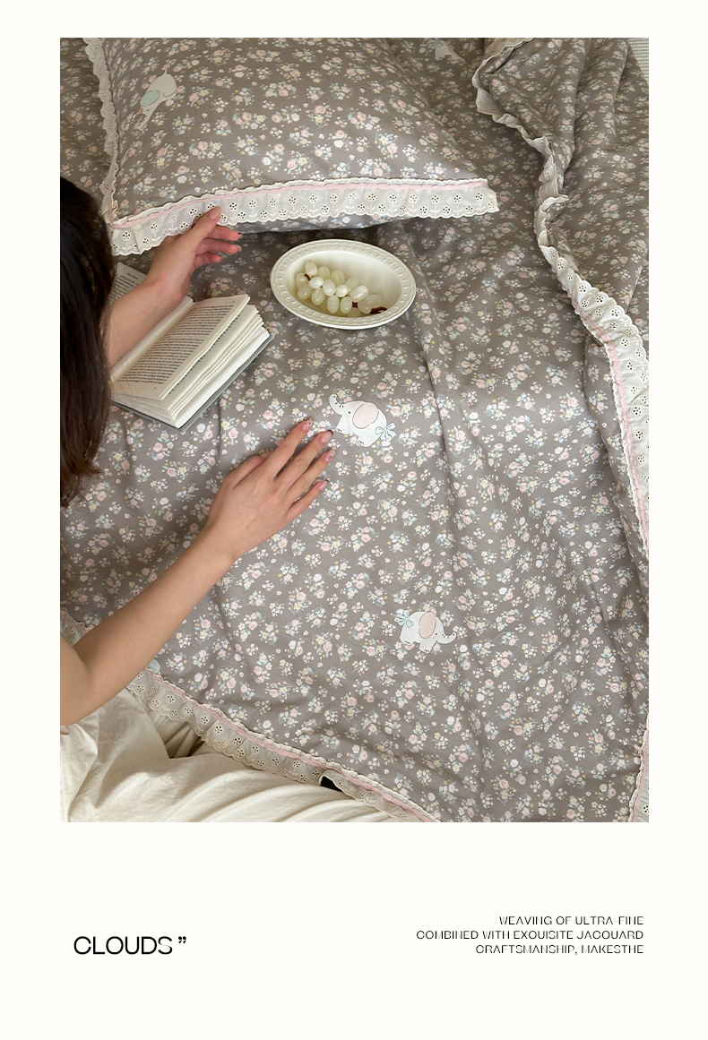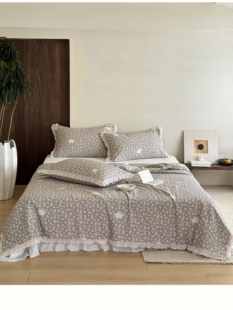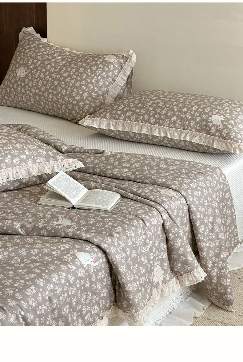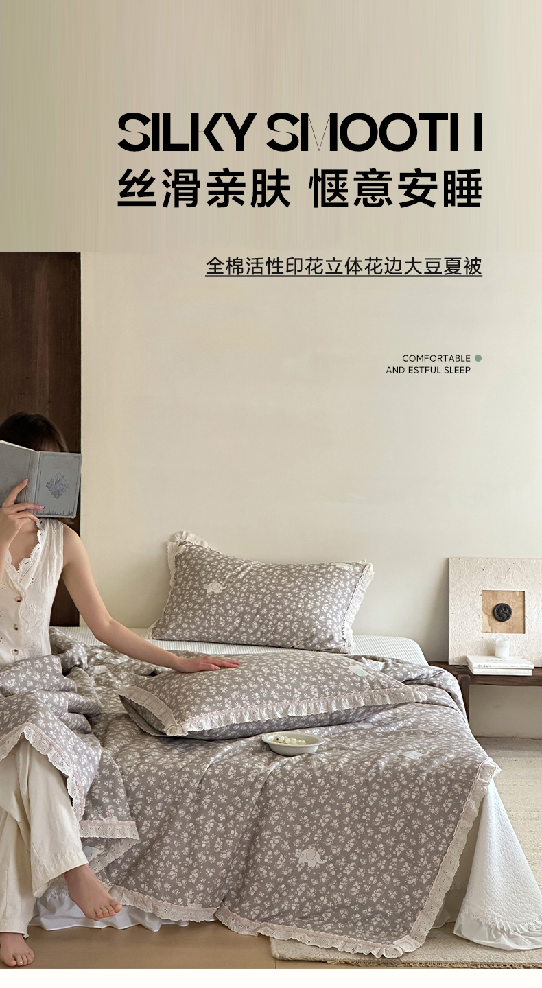 (总)一加一 2026新款全棉活性印花立体花边大豆夏被夏凉被空调被四件套,组合图仅供展示不可下单,绿芜汀,泡泡小象,浅茶春樱,浅纹蓝,浅星纱,蔷薇凝,微花耳耳,小镇漫游记,星花结,杏仁小熊仔