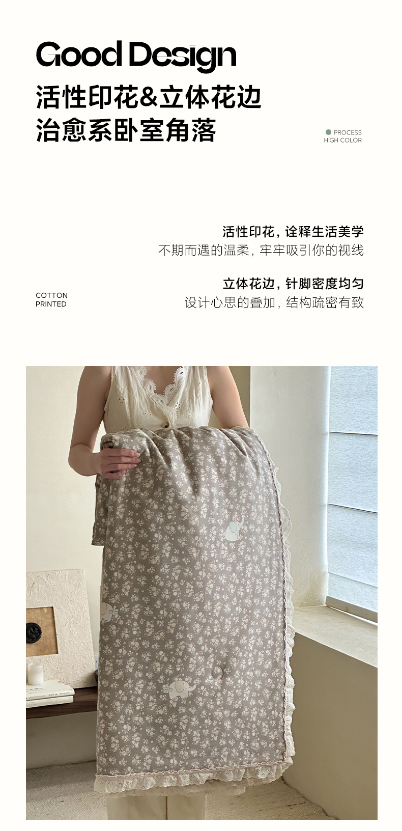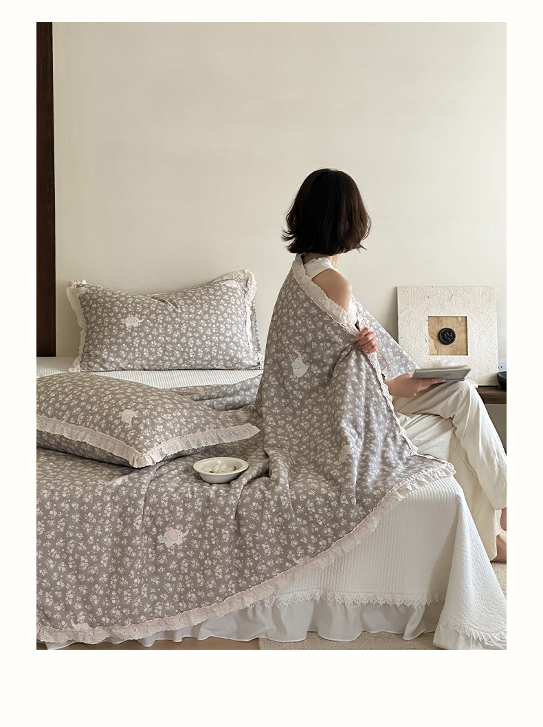 商品名称:一加一 2026新款全棉活性印花立体花边大豆夏被夏凉被空调被四件套 泡泡小象